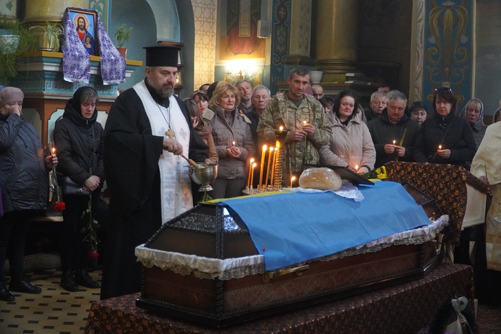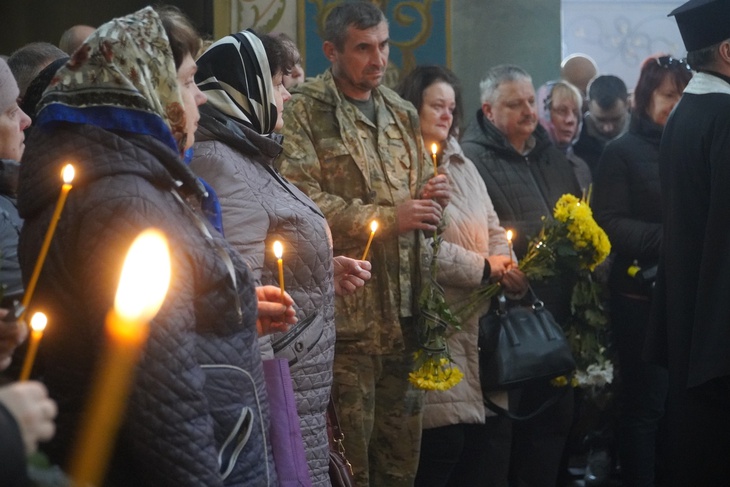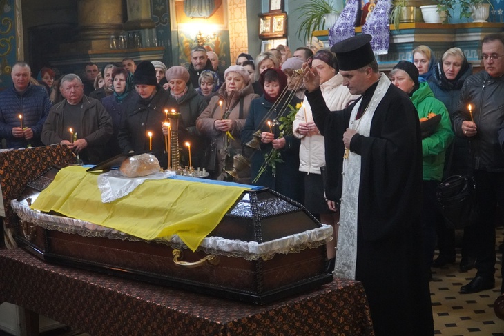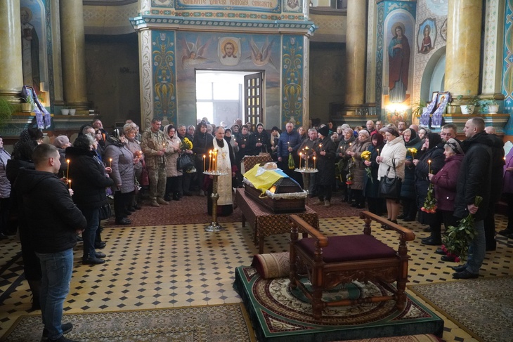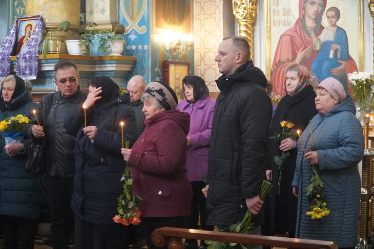Попрощатись із захисником, який віддав життя за незалежність України, прийшли його рідні, друзі, побратими, сусіди, представники місцевої влади та небайдужі містяни. Чин похорону священнослужителі звершили у соборі Різдва Христового.