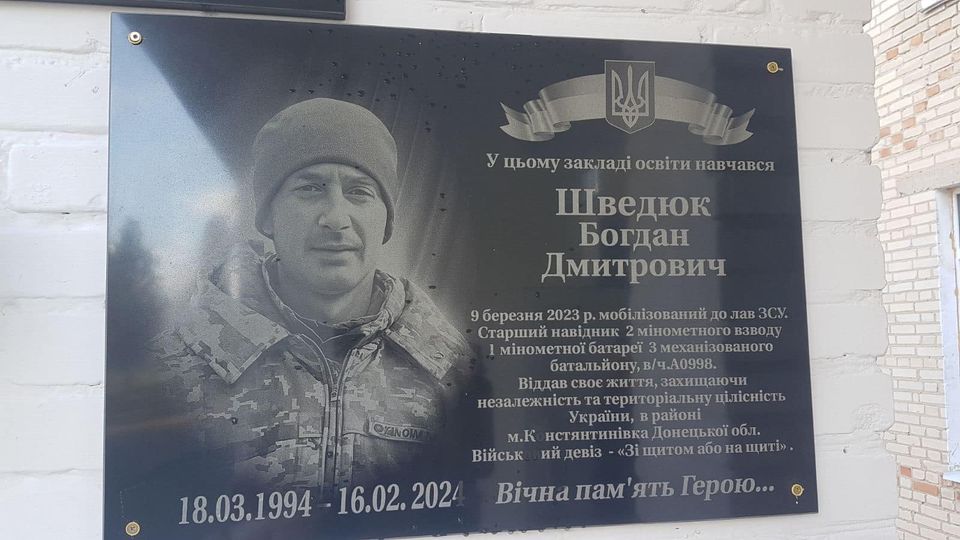 У неділю, 24 березня, у ЗЗСО Горішненський ліцей відкрили меморіальну дошку на честь Героя випускника ліцею Шведюка Богдана Дмитровича.