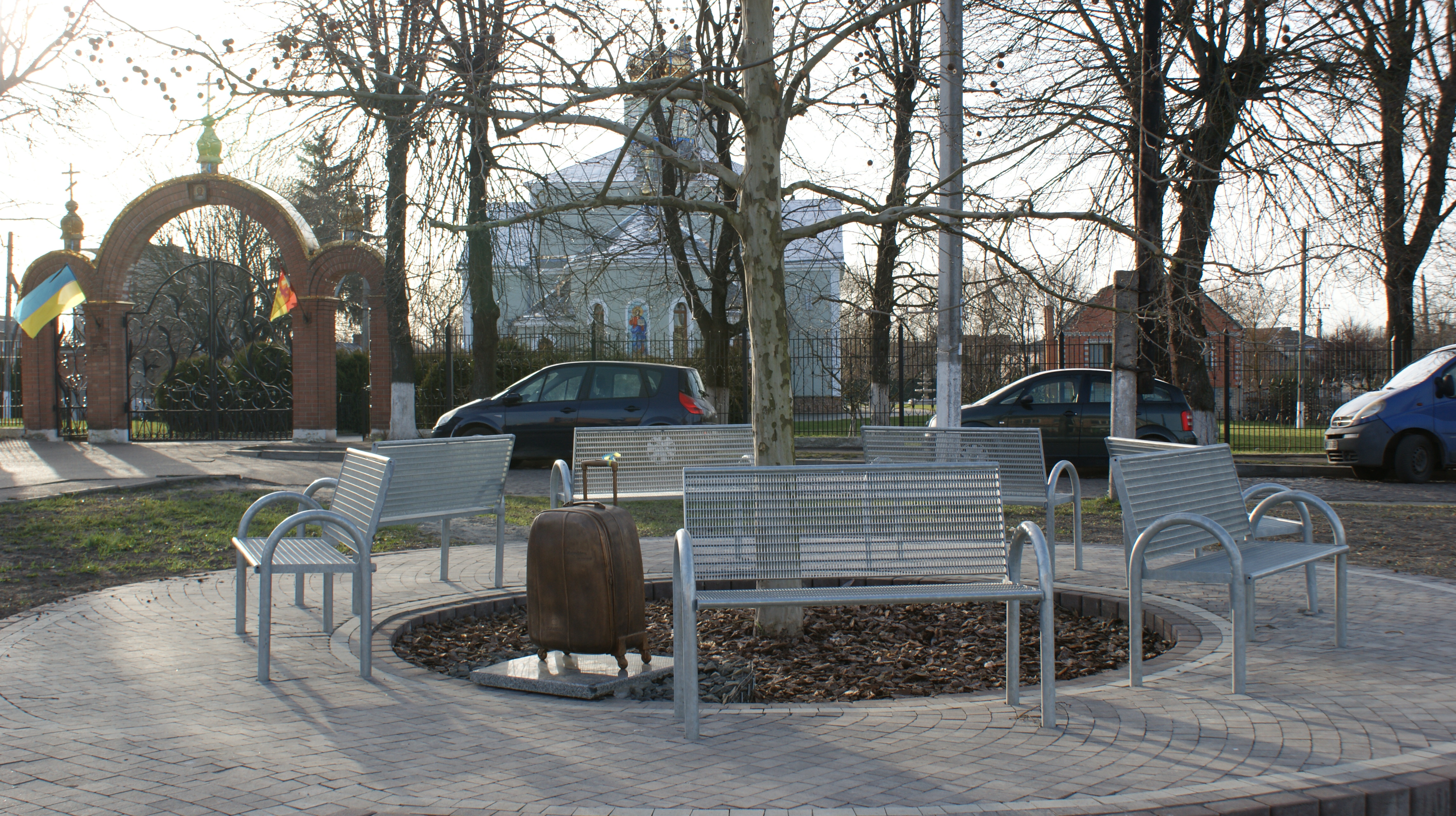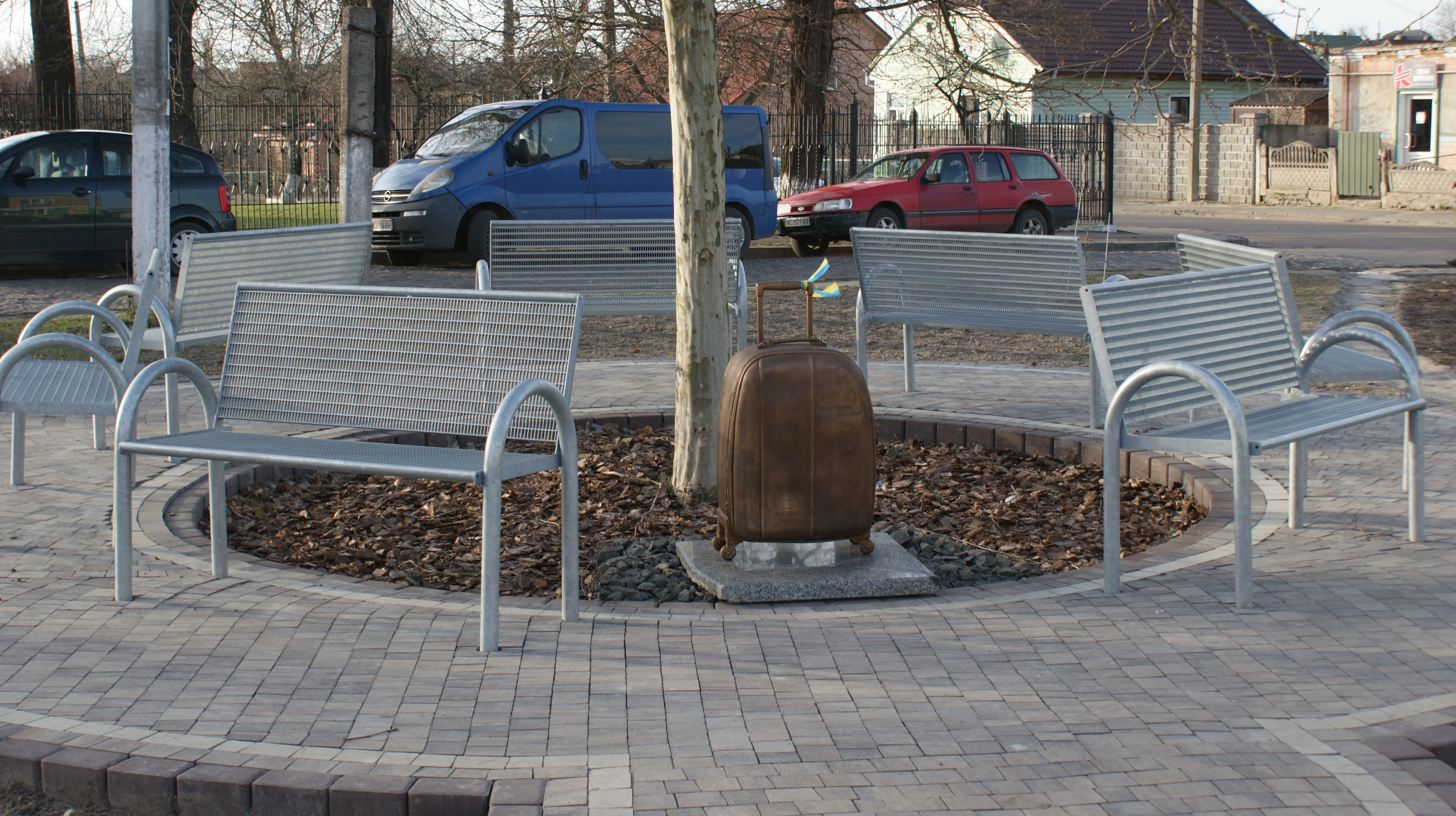 Сергій Новосад – корінний рожищанин, вирішив облаштувати сквер у центрі міста та встановив незвичайний пам'ятник – бронзову валізу із написом «Життя у валізу не складеш».