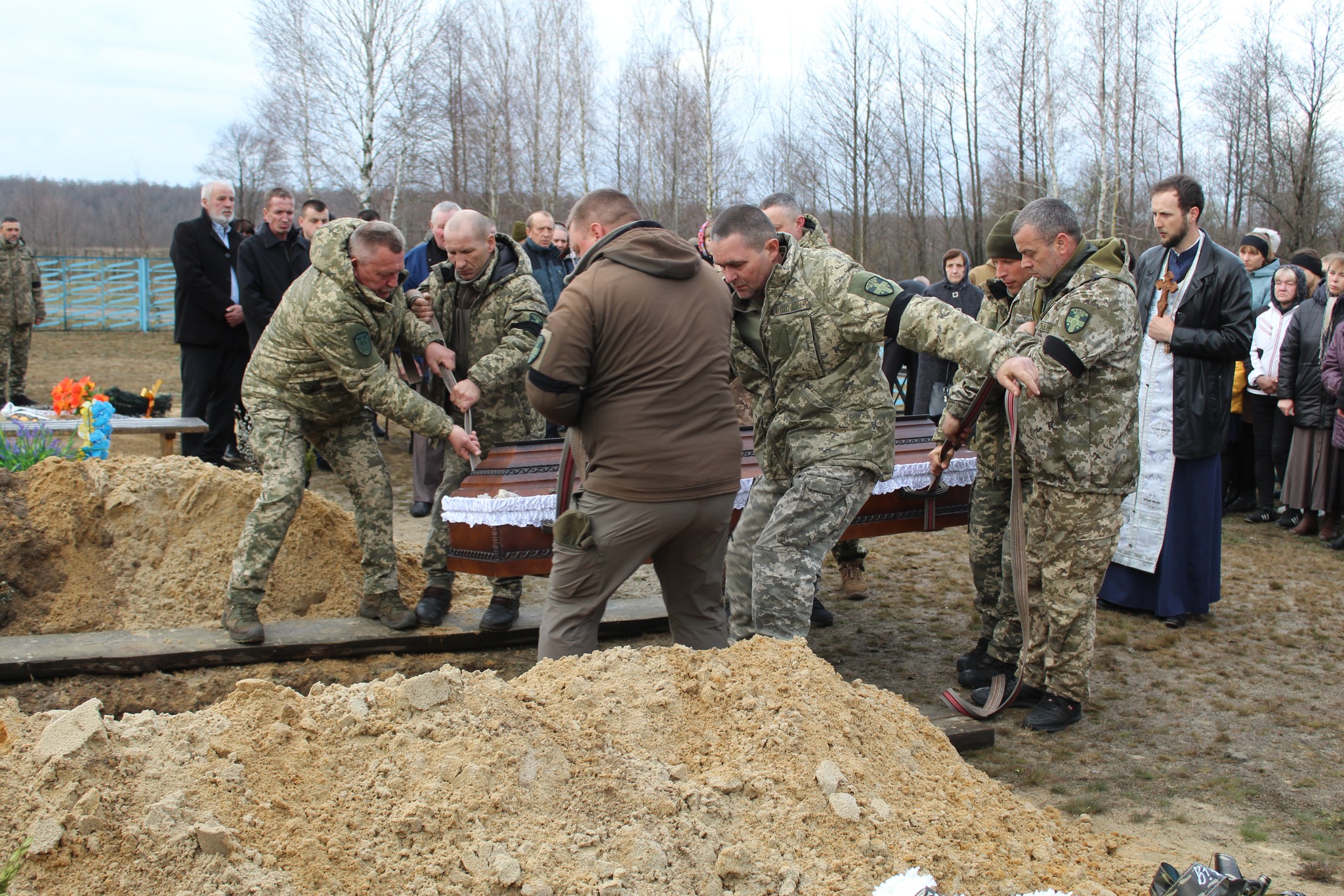 Поховали Олександра Мохнюка з військовими почестями на кладовищі села Мельники.