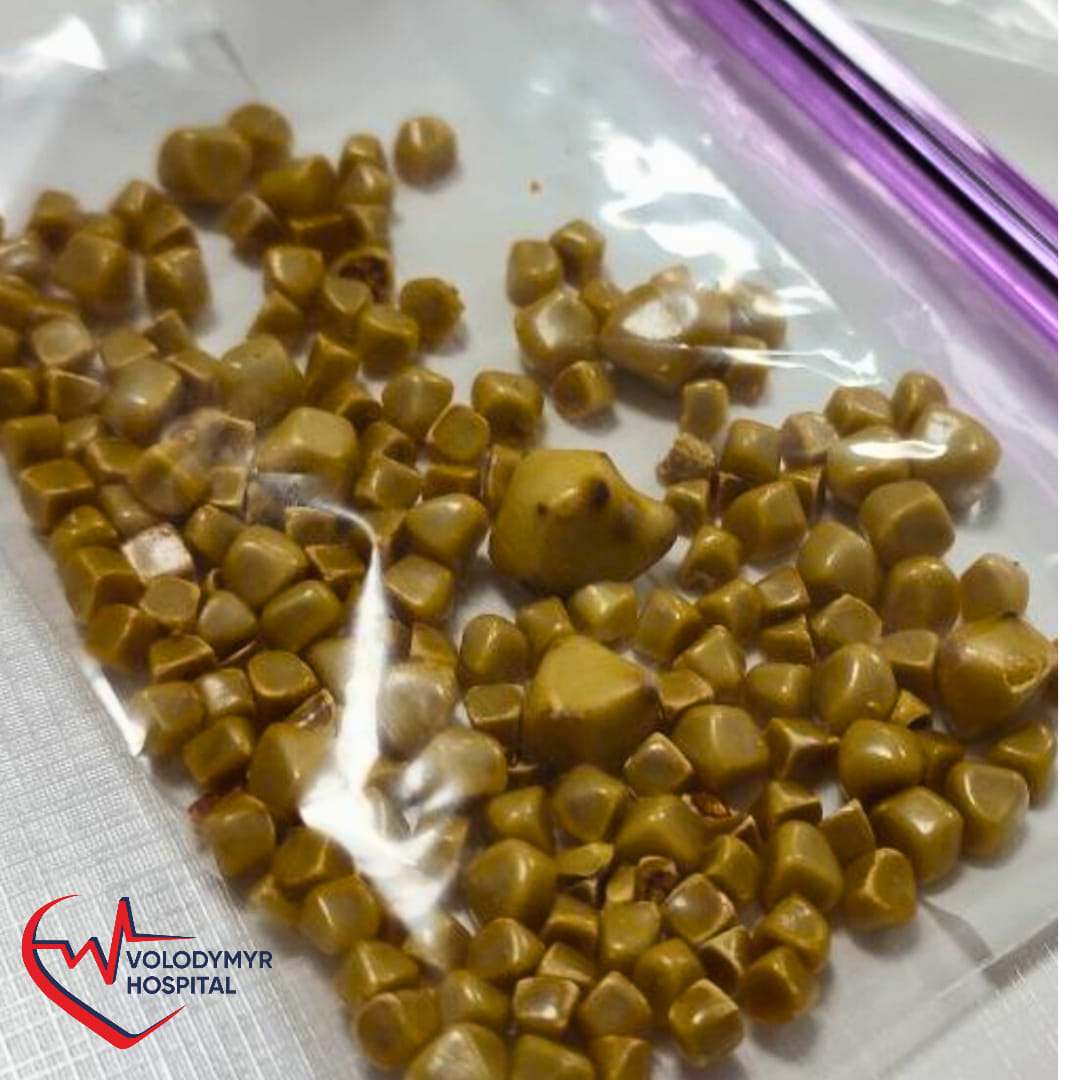 Хірурги Володимирського ТМО видалили пацієнтці жовчний міхур разом із понад сотнею камінців. Все, що буде нагадувати їй про операцію - це три маленьких проколи на животі.