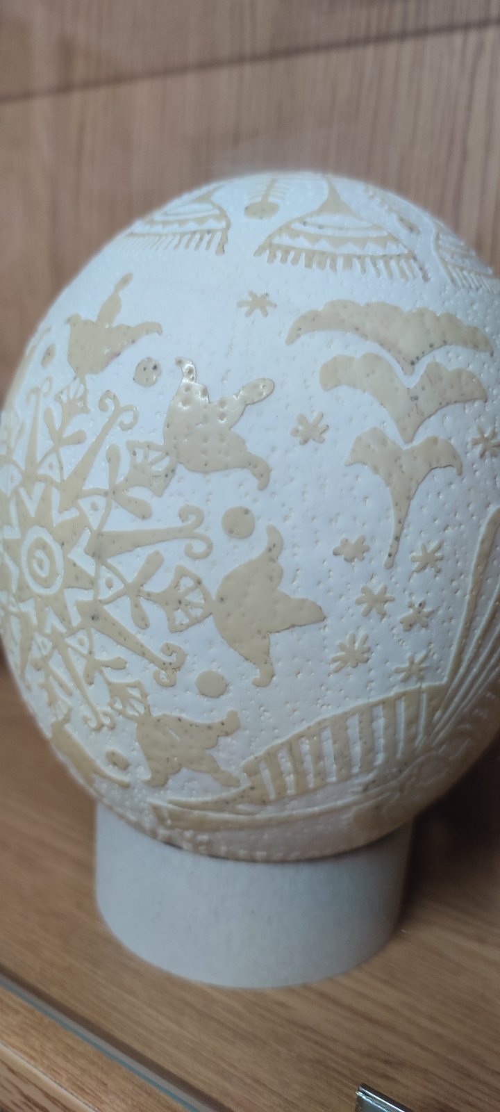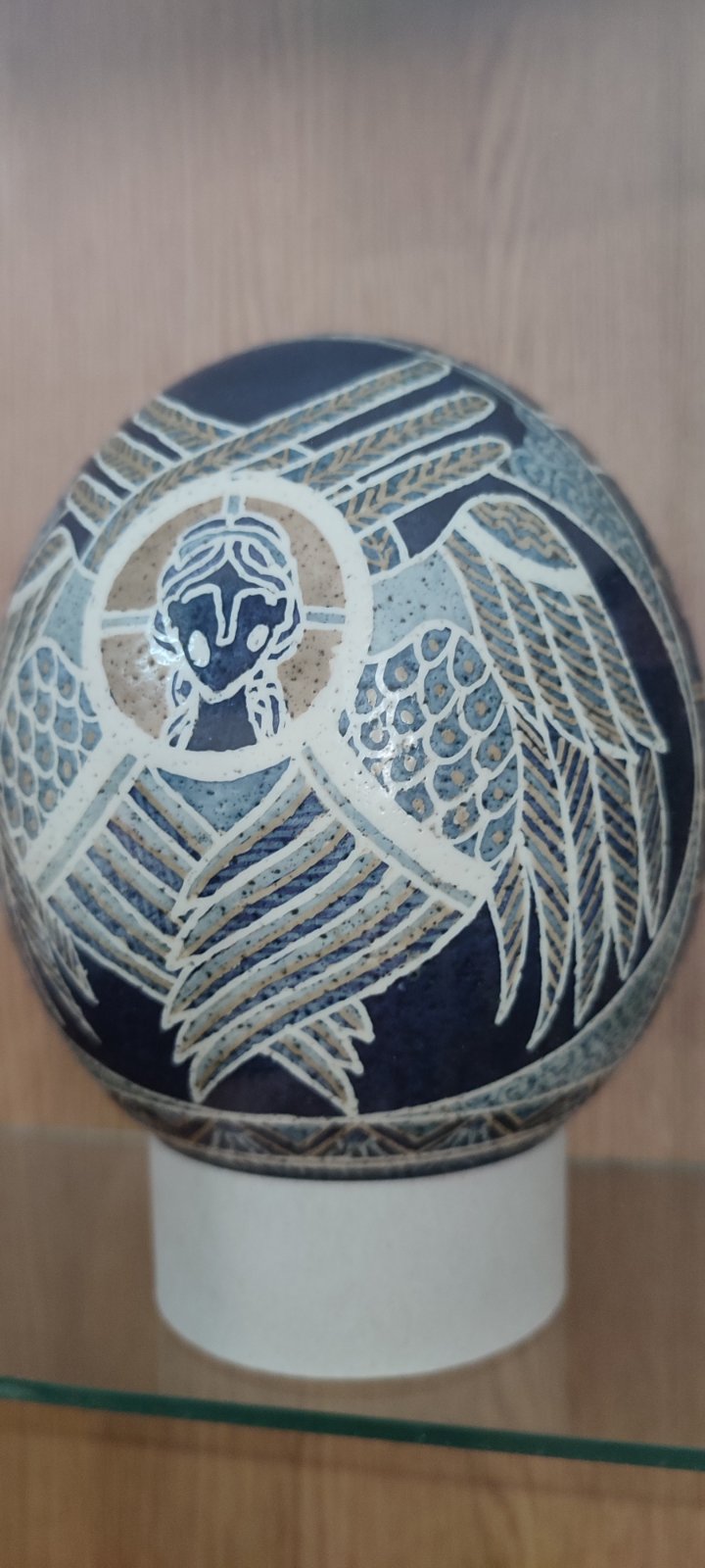 Так в період війни, який переживає Україна, автор зобразила на чорному тлі писанки світлі крила ангела, що обіймають або захищають від пітьми. Очевидно, що ця робота символізує віру у всеперемагаючу силу світла, яка захистить Україну, збереже від занепаду. Нині все частіше в композицію писанки мисткиня вплітає зображення тризуба, соняшників. Також в колекції має писанки створені методом травлення в оцтовій кислоті. Така писанка нагадує вишукане мереживо.