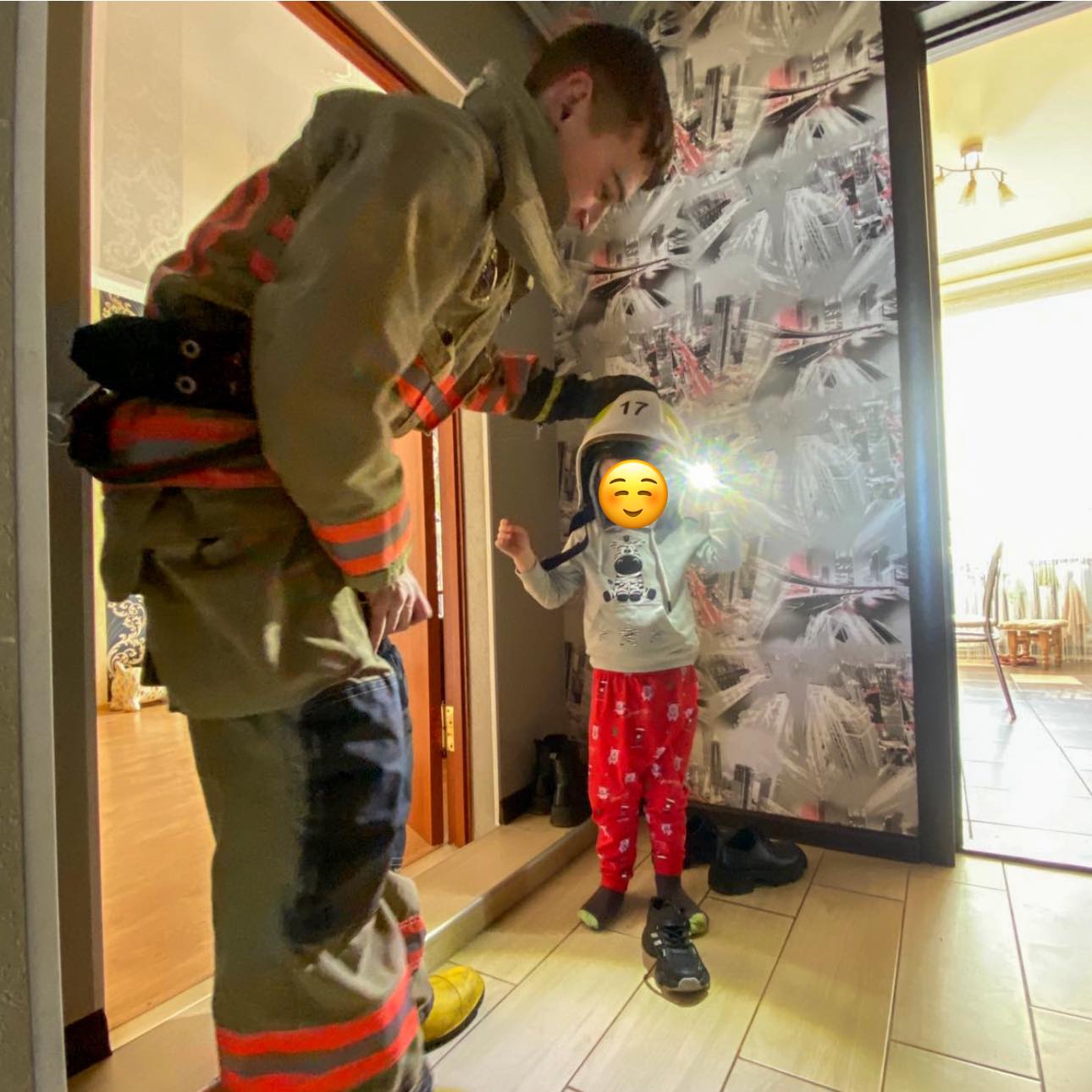 З хлопчиком все було добре і, щоб підтримати засмученого малого, рятувальники дозволили йому приміряли пожежну каску та сфотографувались з ним.