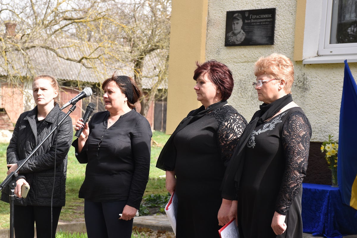 На відкриття прийшли рідні, друзі загиблого, представники місцевої влади та односельці, щоб вшанувати та вкотре схилити голови перед подвигом полеглого воїна. Честь відкрити меморіальну дошку надали батькам і дружині Івана.
