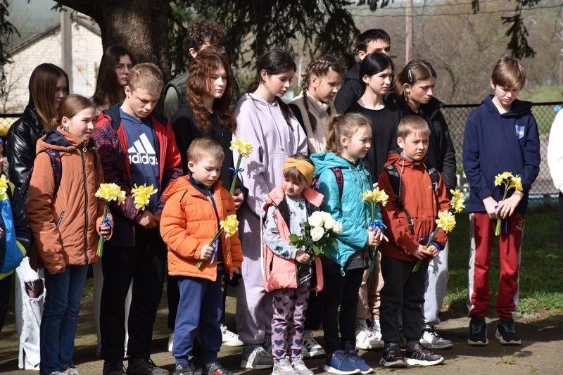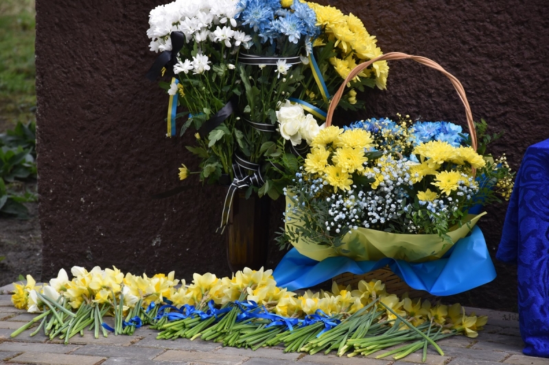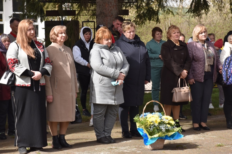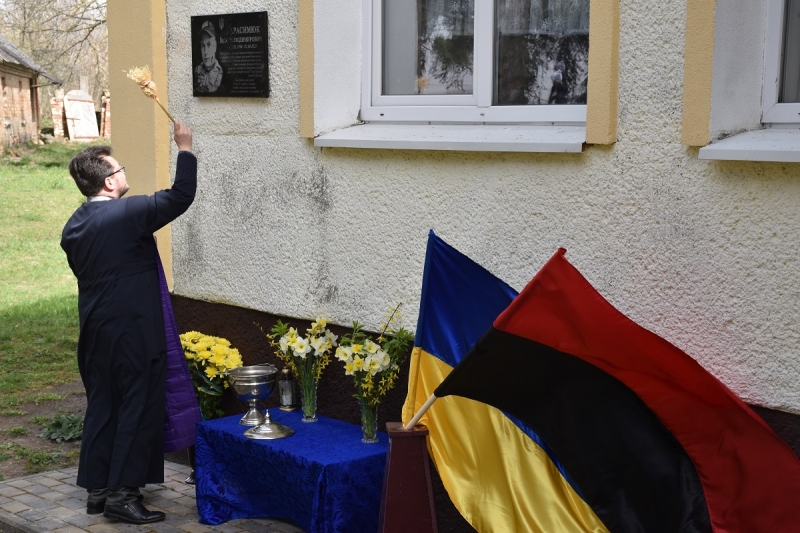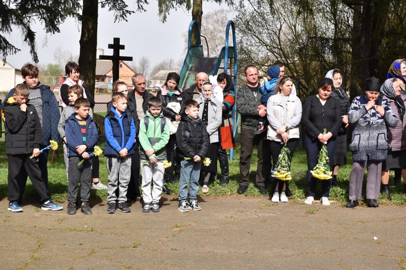 Священник відслужив панахиду та освятив меморіальну дошку. Потому учасники заходу поклали квіти до пам'ятного знака, низько схиливши голови на знак великої шани та вічної пам’яті.