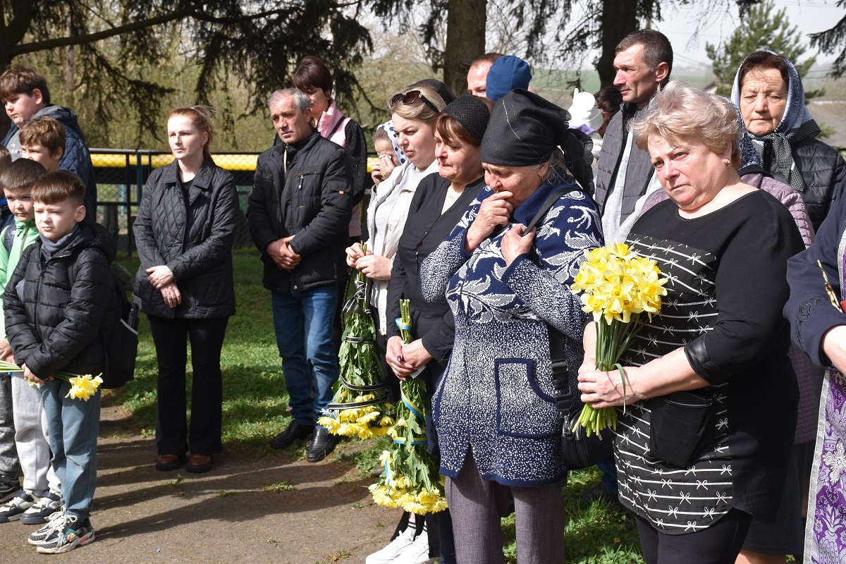 Присутні хвилиною мовчання вшанували пам'ять полеглого земляка та всіх безневинно загиблих синів і дочок України.