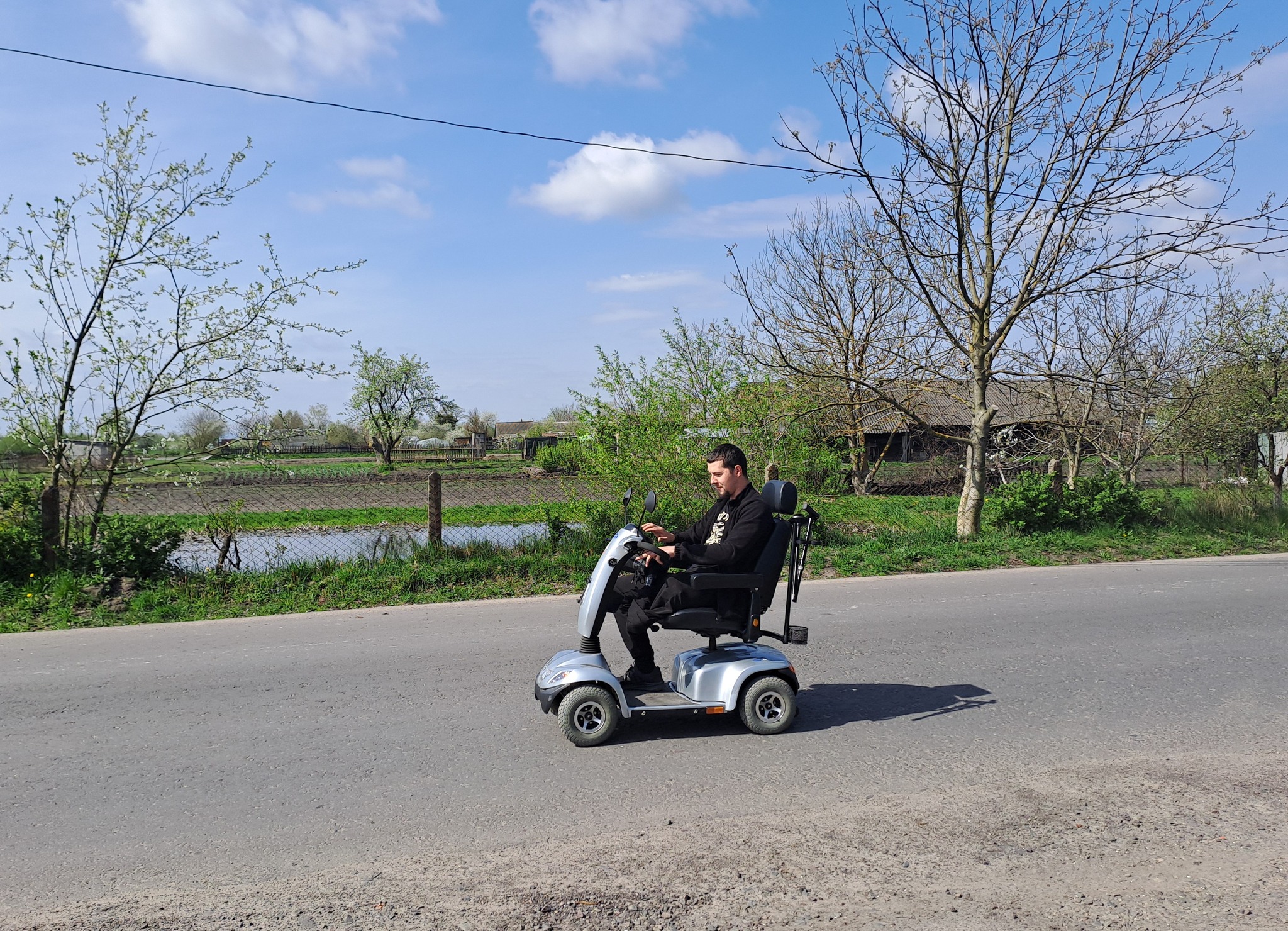 Нині Петро у рідному селі. Сівши за кермо електроскутера, він одразу влаштував тест-драйв транспортному засобу. Каже, що моторолер не дуже швидкий, проте допоможе у пересуванні селом.