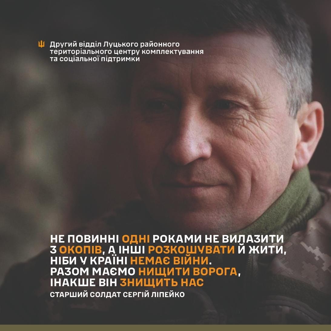49-річний старший солдат Сергій Ліпейко з села Овлочин Володимирського району на Волині вперше став на захист України у 2014.