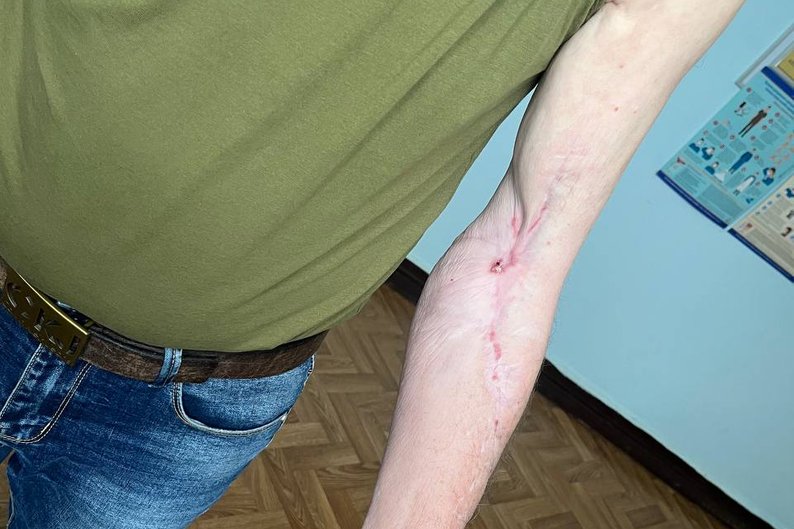"Мені поранили руку, розірвало м'язи, але кістки не пошкодило, — каже чоловік. — Осколок зайшов у груди, зламавши ребра, але зупинився за кілька сантиметрів від серця. Лікарі, коли зробили мені операцію і віддали цей осколок, сказали, що я народився в сорочці".