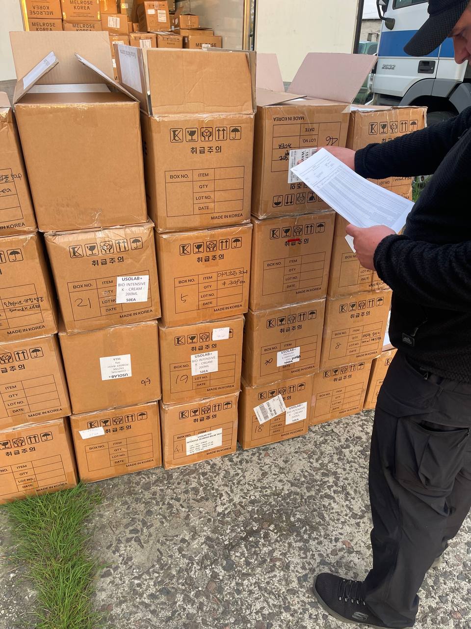 Українське підприємство під час ввезення косметики та одягу популярних брендів подав товаросупровідні документи з неправдивими відомостями одночасно щодо відправника, одержувача, найменування, кількості товару, необхідні для визначення його митної вартості. Волинські митники встановили цей факт у ході повного митного огляду вмісту багажного відділення невеликого бусика, який ввозив цей консолідований вантаж. Як наслідок, на склад митниці попрямувало майже 130 тисяч одиниць виробів корейської б'юти-індустрії. Попередньо, їхня вартість оцінюється у понад мільйон гривень.