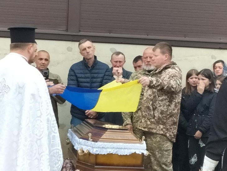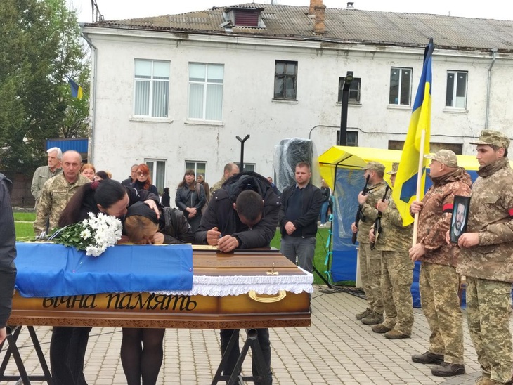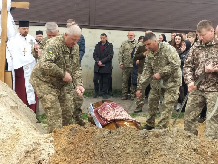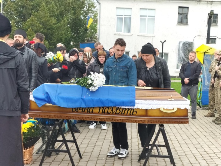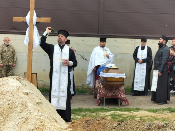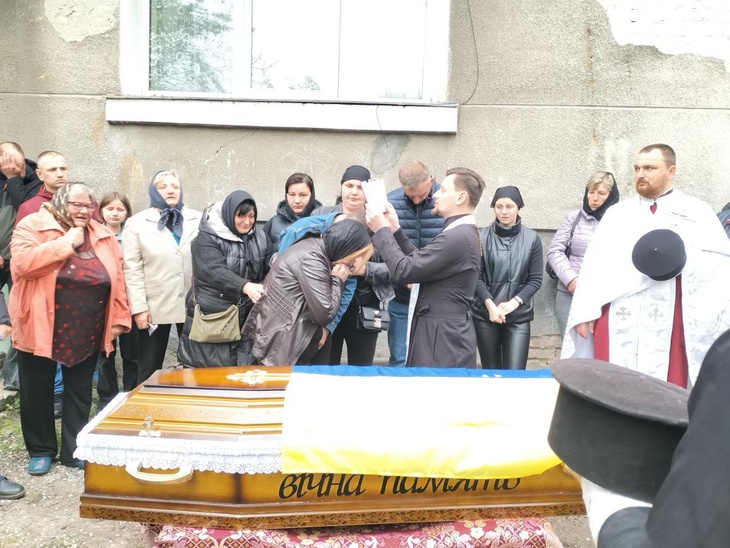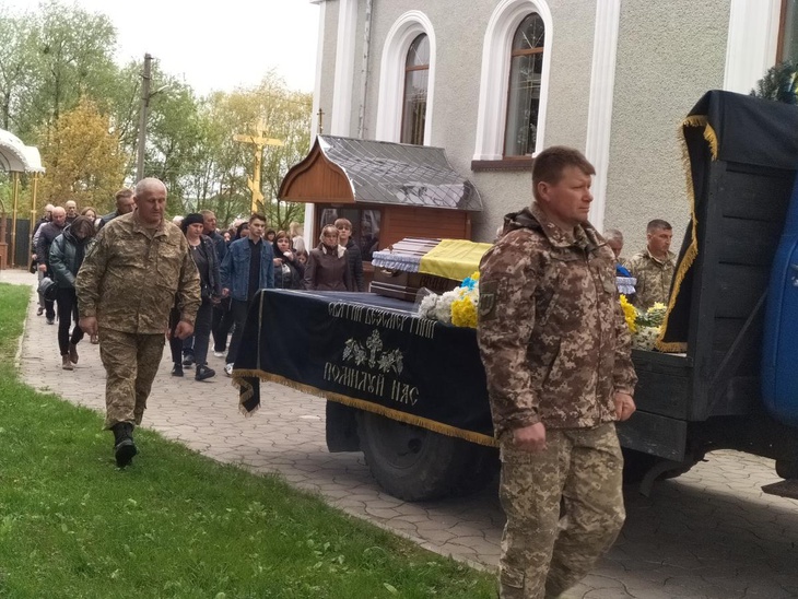 Під постріли військових та мелодію Державного Гімну рідна земля прийняла на вічний спочинок зболене тіло загиблого. А синьо-жовтий стяг, яким була вкрита домовина, військові передали синові Героя, як символ вільної держави, за яку віддав життя його батько.