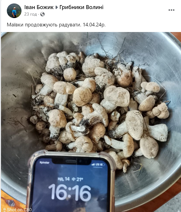 «Офіційно оголошую - грибний сезон відкрито!», - підписав свої фото автор, а в коментарях зазначив, що назбирав їх 13 квітня у Володимирському районі.