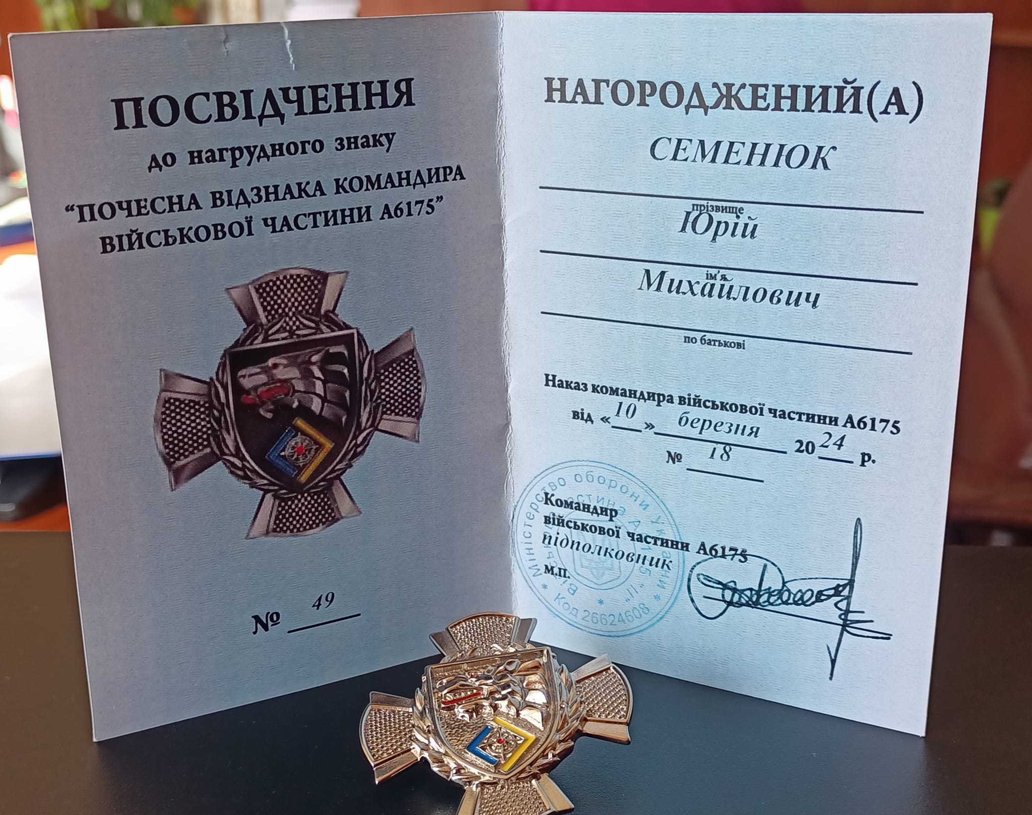 Почесну відзнаку військової частини ЗСУ отримав Підгайцівський сільський голова Юрій Семенюк.