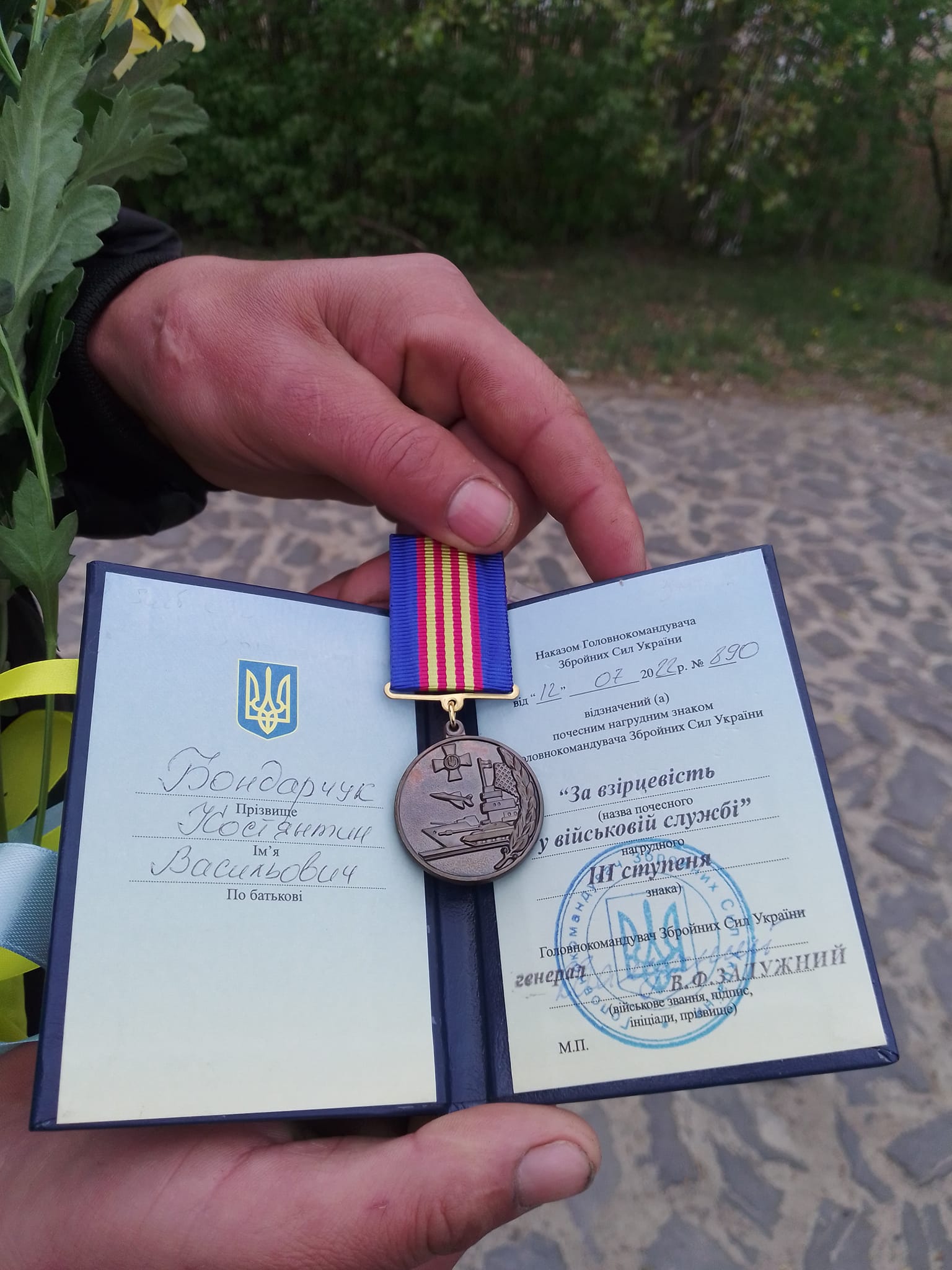 Нагрудним Знаком «За Взірцевість у Військовій Службі» ІІІ ст., Наказом Командувача Збройних Сил України Валерія Залужного, нагороджено Бондарчука Костянтина Васильовича, батька, який виховує уже чотирьох дітей - Гідний Приклад для підростаючих Українців.