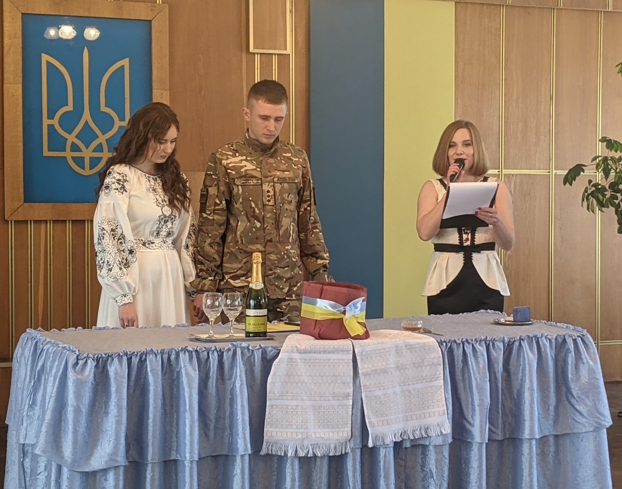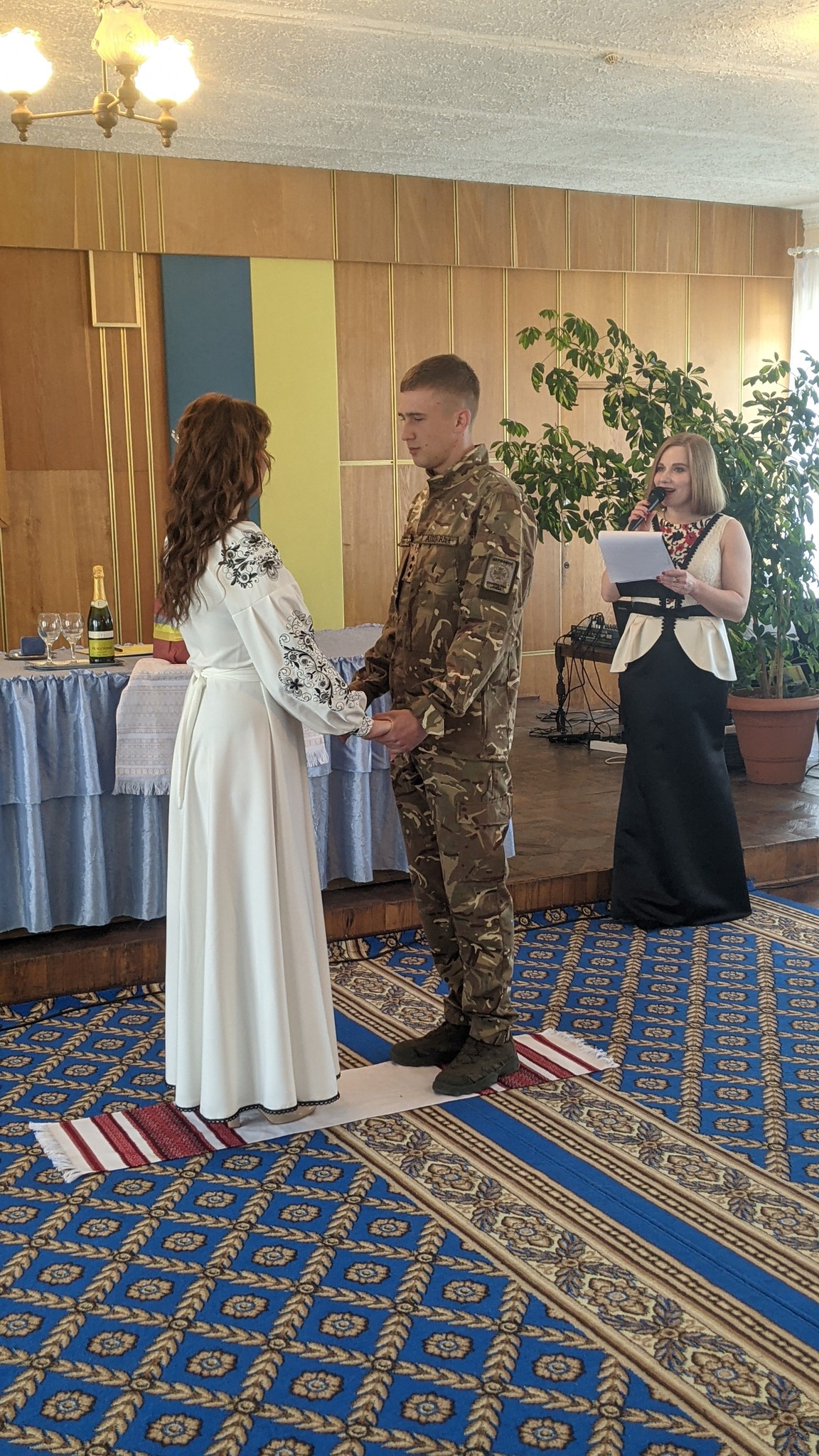 17 квітня в Центрі культурних послуг відбулась урочиста церемонія шлюбу військовослужбовця Максима та його обраниці Діани.
