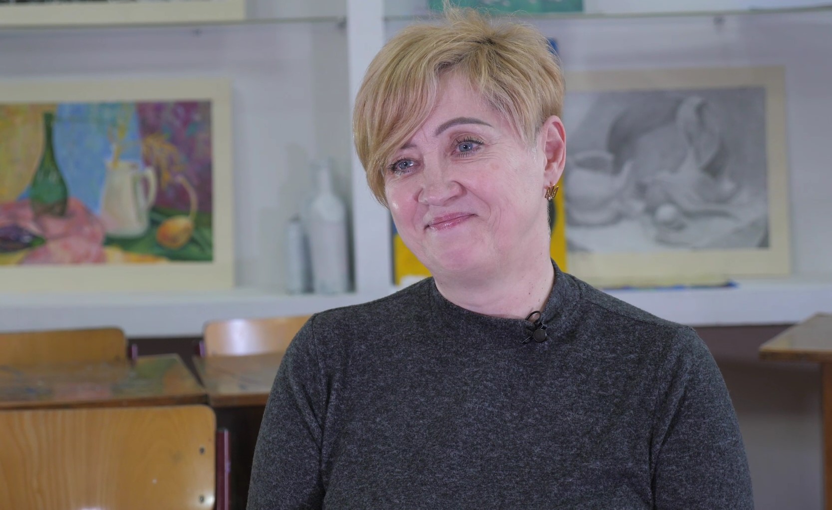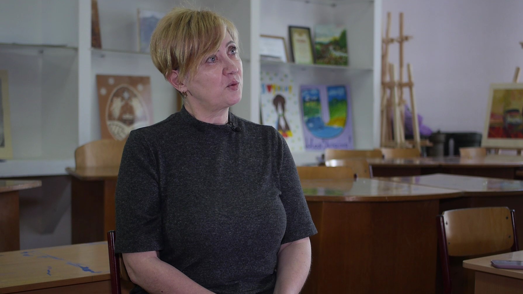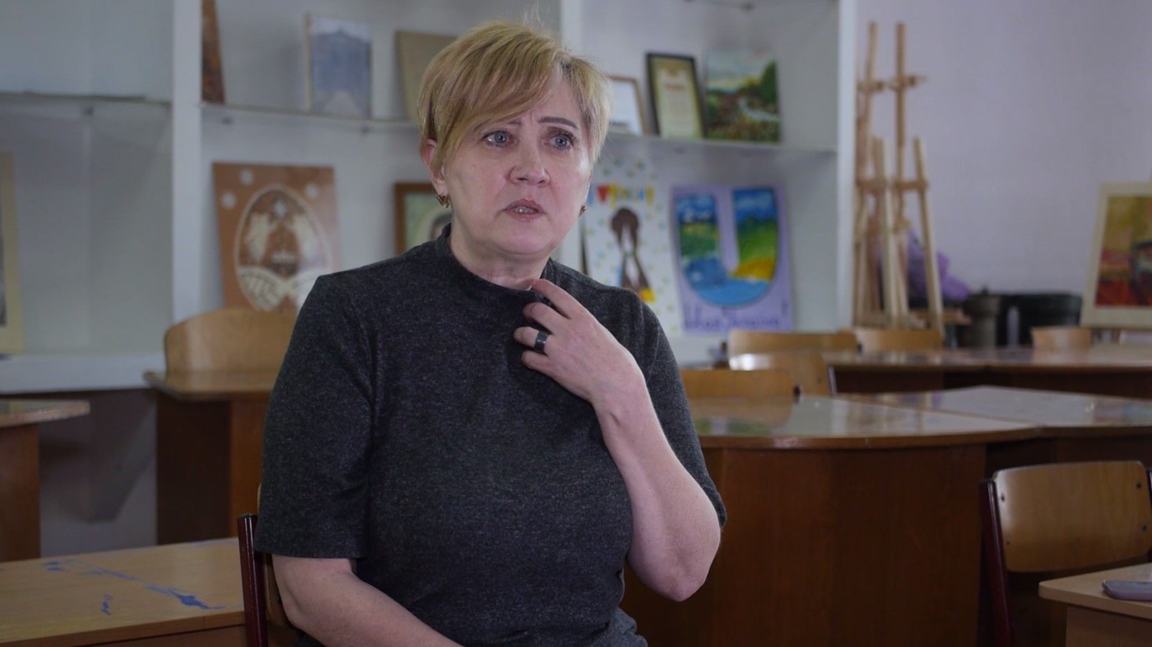 Вчителька досі не може забути перший день вторгнення. Напередодні середній син попередив матір про небезпеку та наказав підготувати підвал. Усю ніч було чутно вибухи.