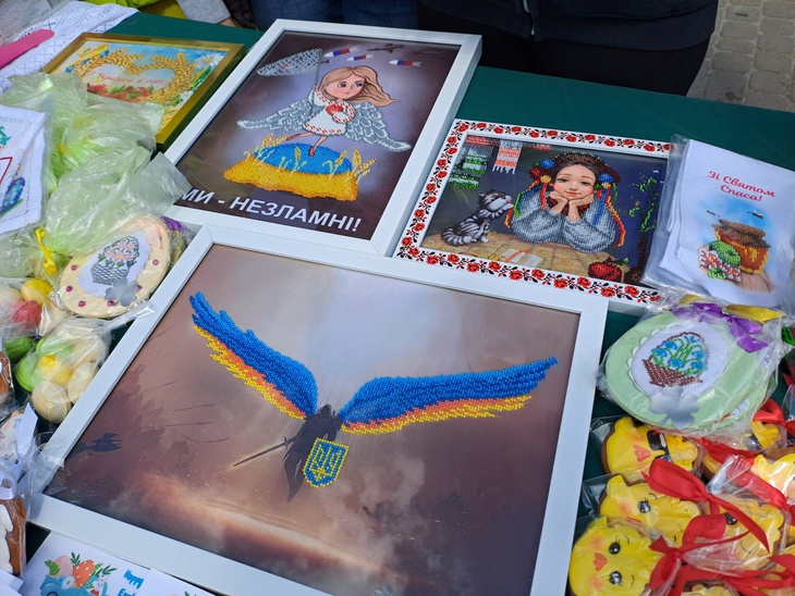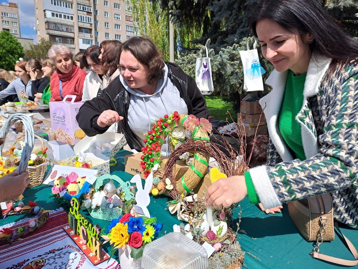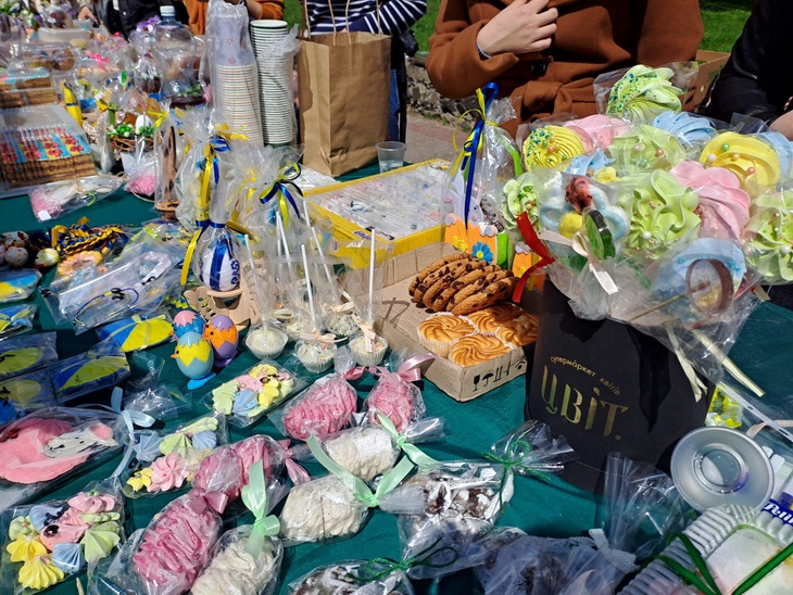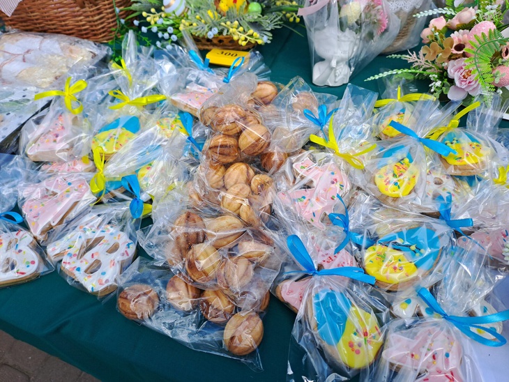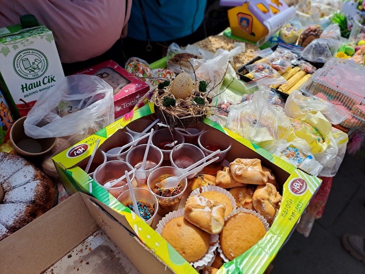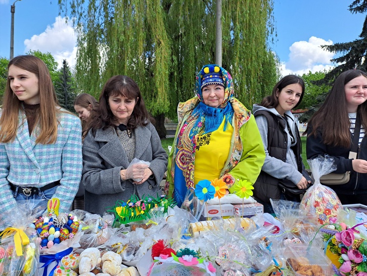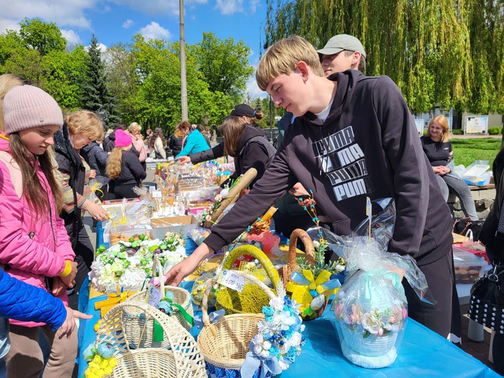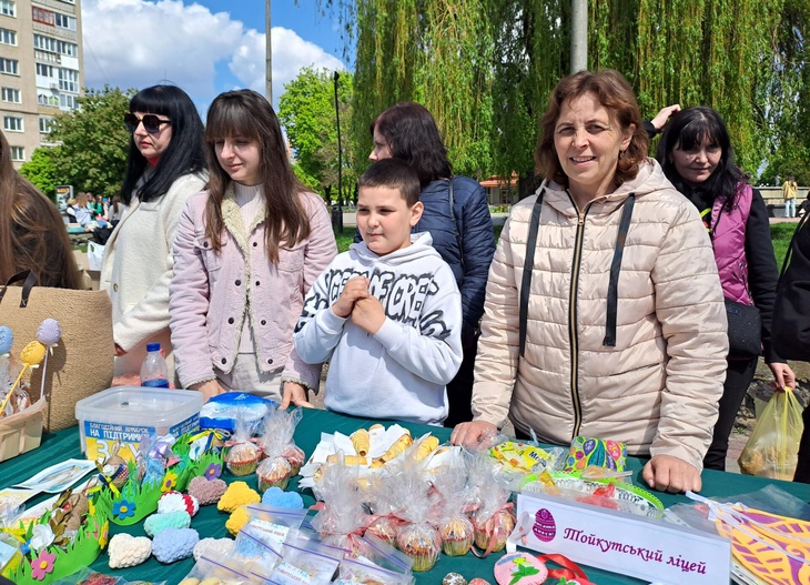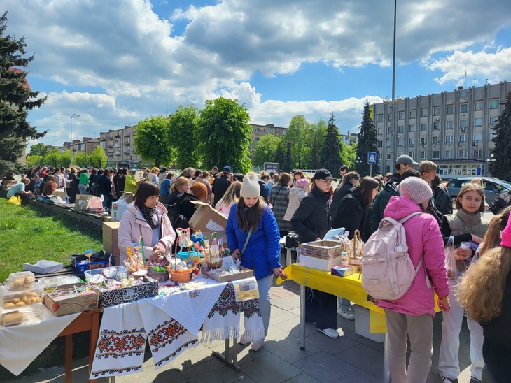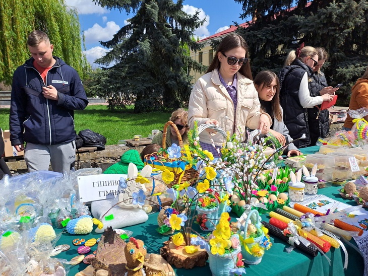 Також освітяни у центральній частині міста влаштували ярмарок, де охочі могли придбати солодощі та великодні сувеніри. Зібрані кошти підуть на допомогу Збройним Силам України.