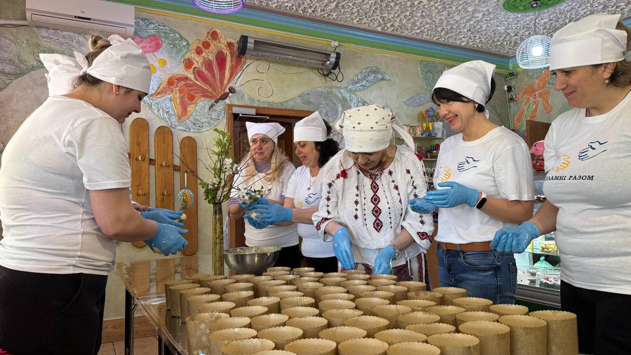 130 великодніх пасок спекли й прикрасили переселенці, які мешкають у Нововолинській громаді. Приміщення та спонсорську допомогу надав місцевий підприємець Тарас Бай, а складники для випічки – гуманітарний штаб Нововолинськ Help.