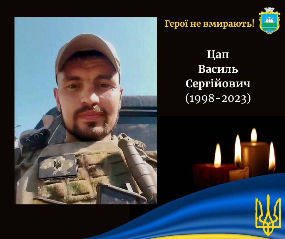 …Закрита труна, вкрита державним прапором. Багряніють у хаті квіти. Над домовиною сидить хлопчик, якому нема й трьох років. Буркотить іграшками по ній і все питає, чого тато так довго до нього їхав… А тепер мовчки спить. Сім довгих місяців рідні з нетерпінням чекали вдома свого сина, брата, чоловіка й батька, свого захисника. Приїхав, на жаль, цієї весни на «щиті». Життя 25-річного Василя Цапа трагічно обірвалося під час виконання бойового завдання на Донеччині ще торік восени.
