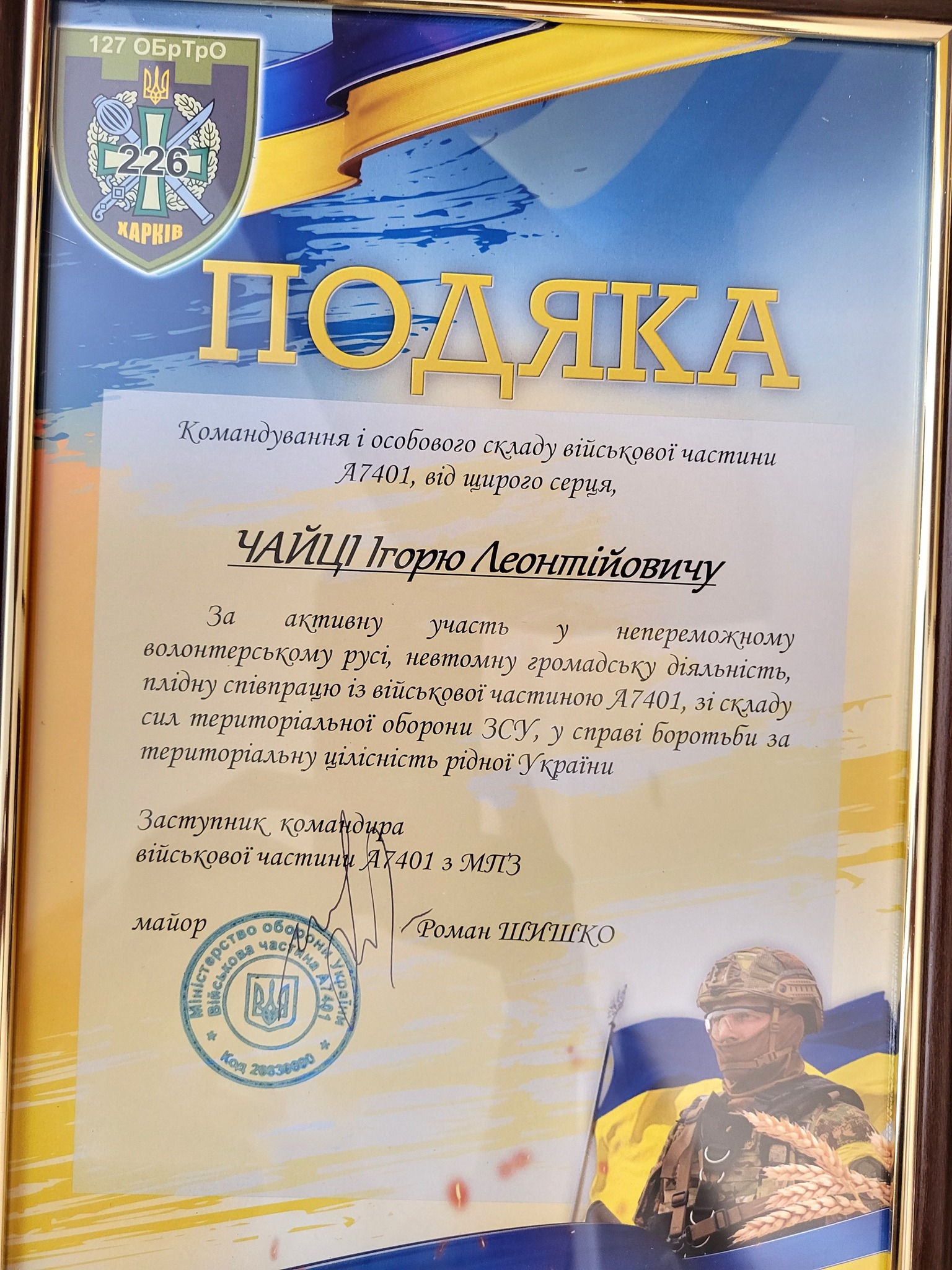 Міський голова Ігор Чайка передав допомогу для в/ч 7401, що у складі 127 окремої бригади ТрО ЗСУ, сформованої у Харкові.