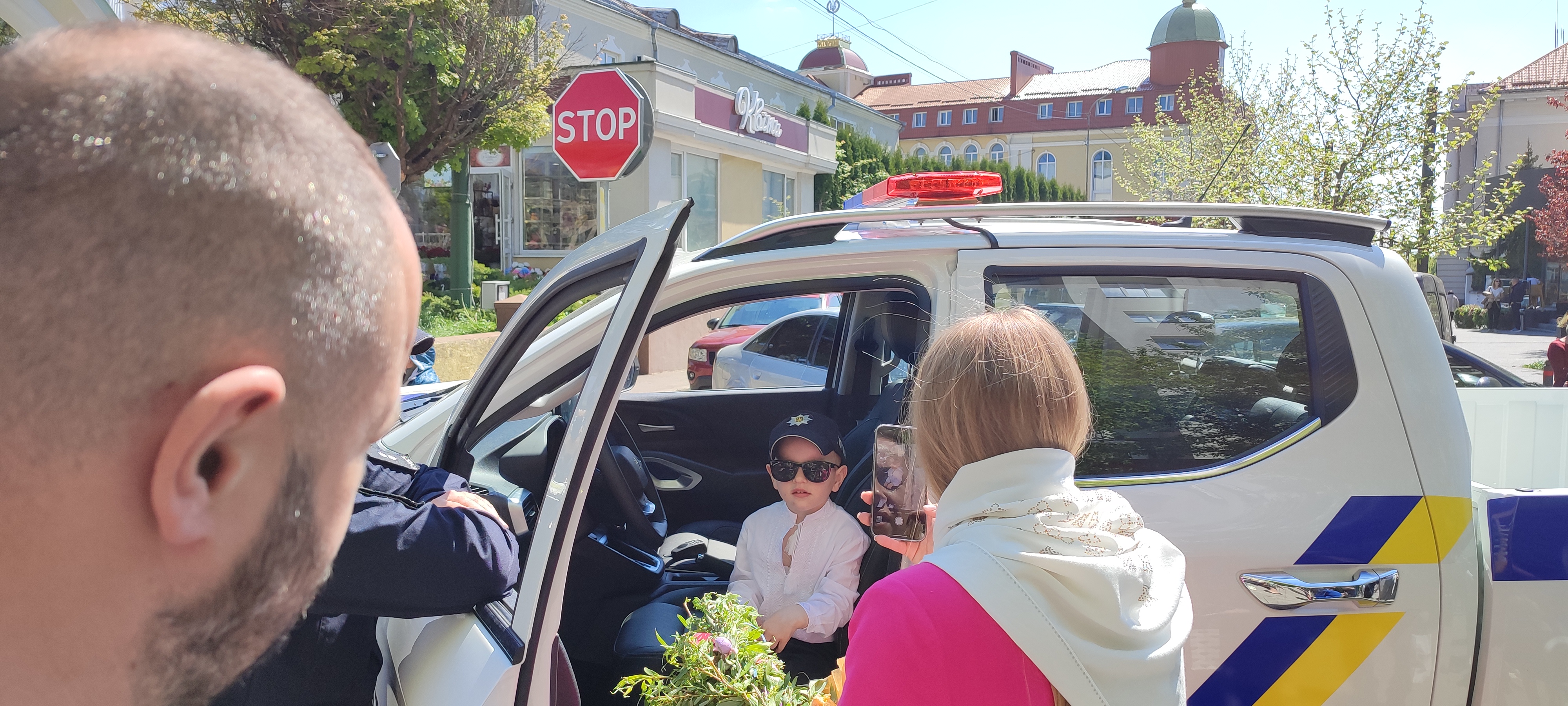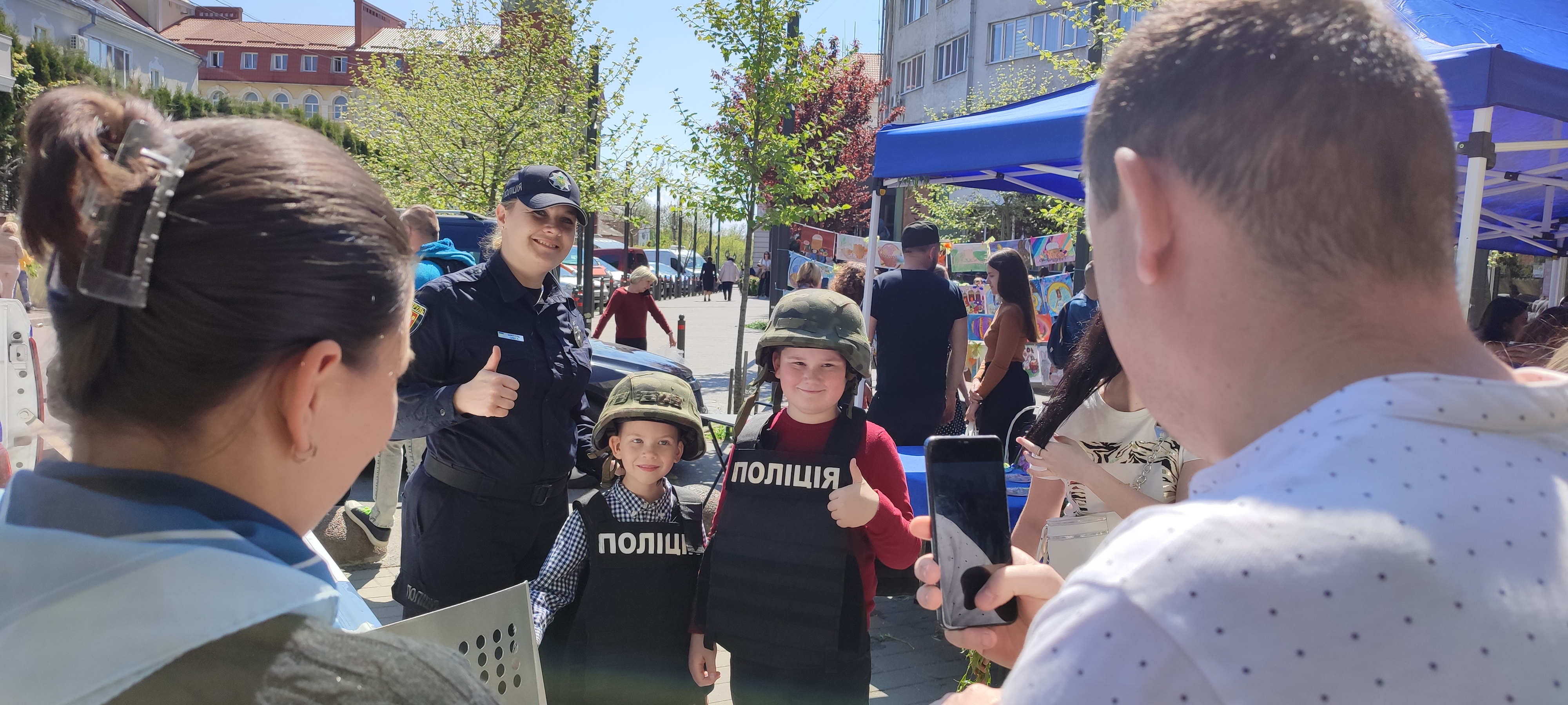 Діти могли посидіти у машині патрульної поліції, приміряти шолом і плитоноску, розпитати поліцейських про їх роботу та сфотографуватись.