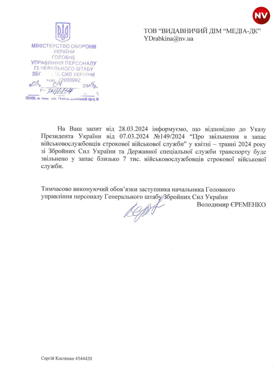 Про це повідомило Головне управління персоналу Генерального штабу ЗСУ у відповідь на інформаційний запит видання Nv.