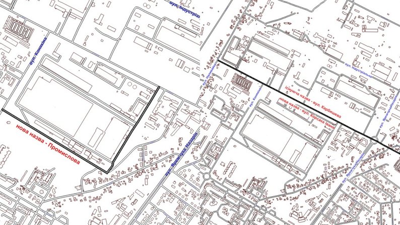 Частину вулиці Карбишева в Луцьку перейменують на вулицю Корсака Івана, частину — на вулицю Промислова. Також в місті перейменували вулицю Чернишевського на вулицю Державності. Офіційно назви зміниться з 1 липня цього року.
