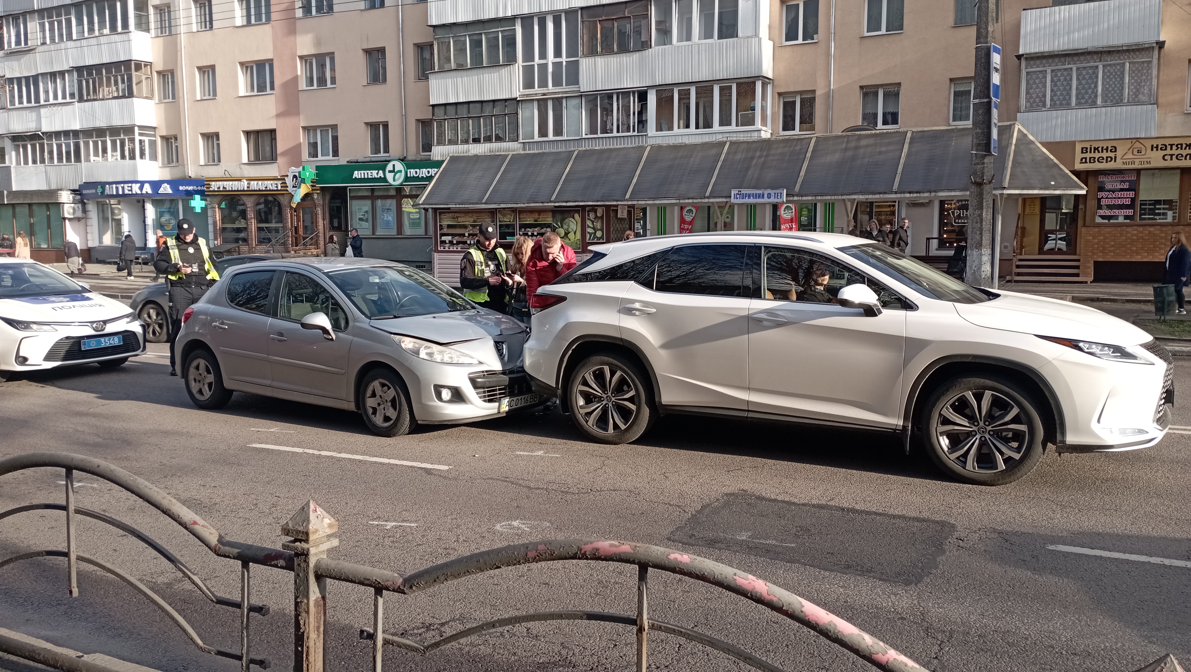 О 18:05 друга дорожньо-транспортна пригода трапилась за участі двох автівок марки «Lexus» та «Peugeot» недалеко від зупинки громадського транспорту «Історичний факультет».