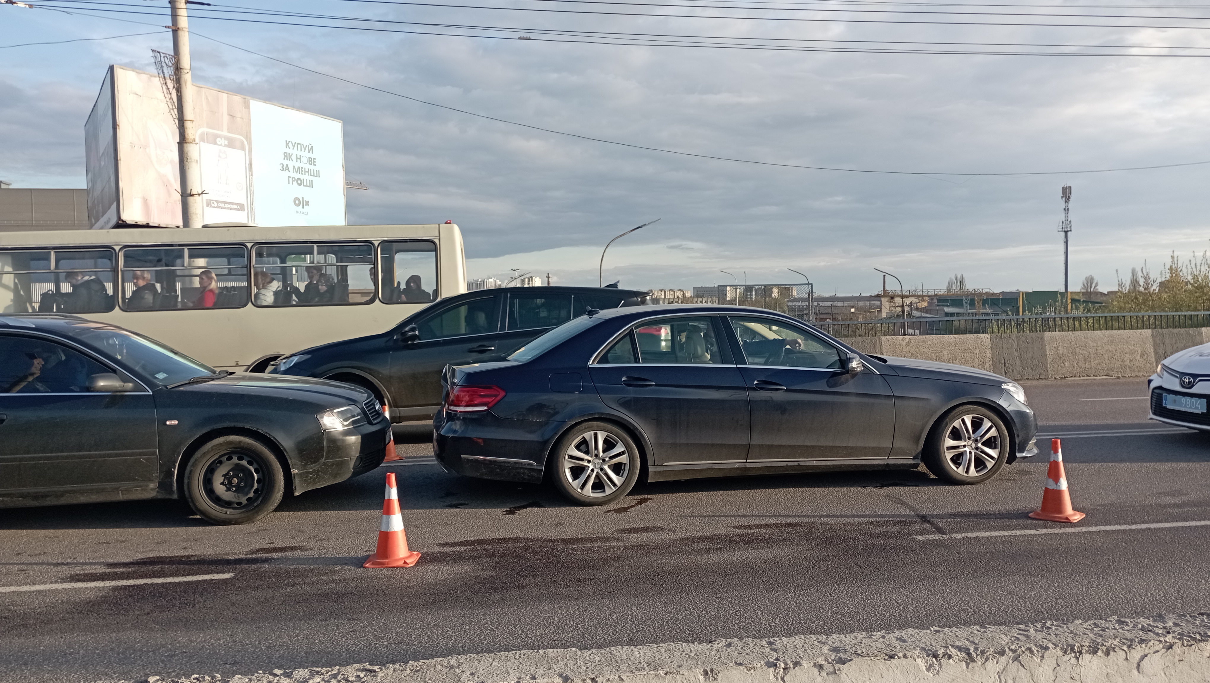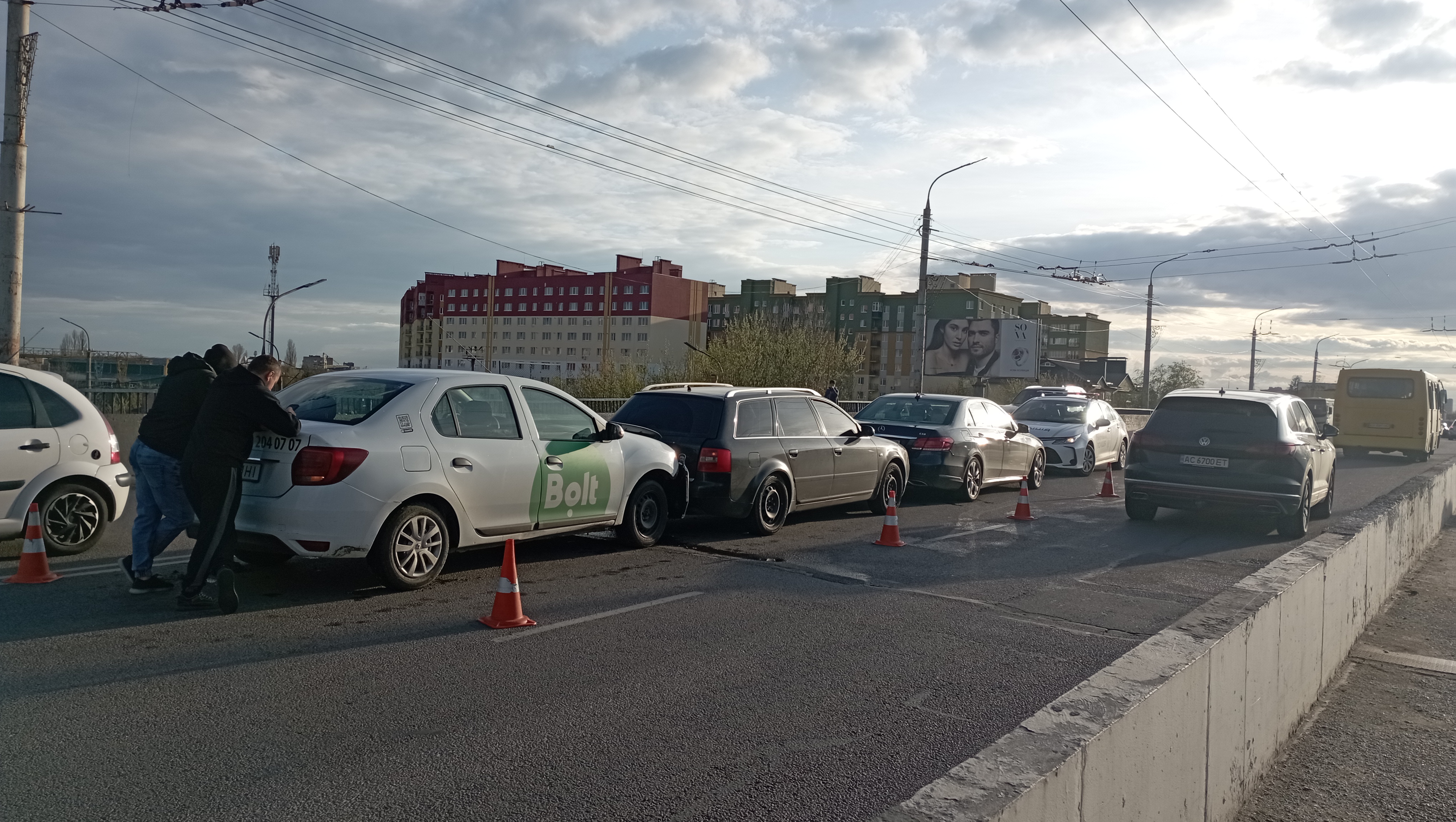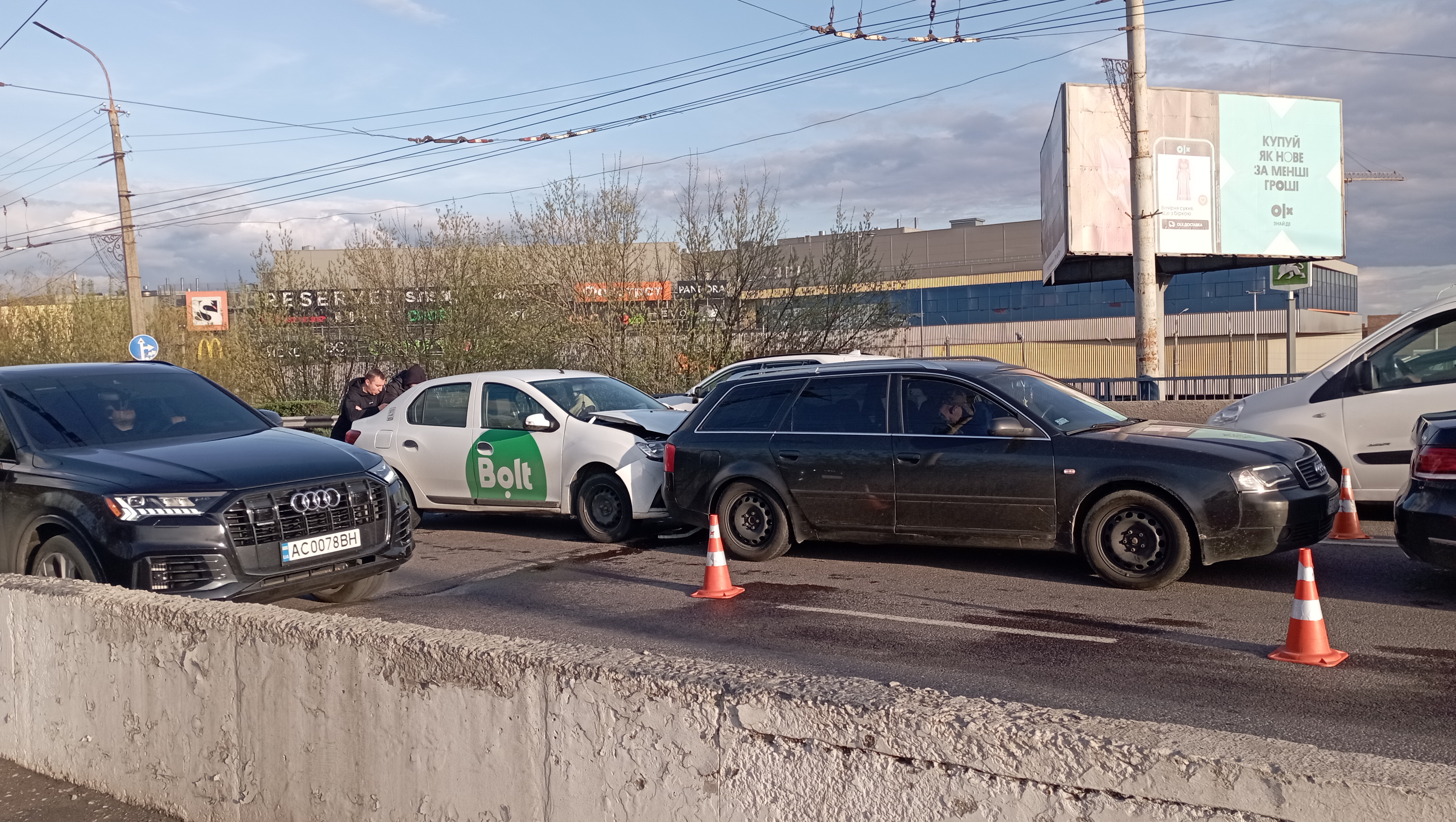 Близько 17:50 на мосту біля «Там-Таму» зіштовхнулись три легковики — «Mercedes-Benz», «Audi» та автомобіль служби таксі «Bolt».
