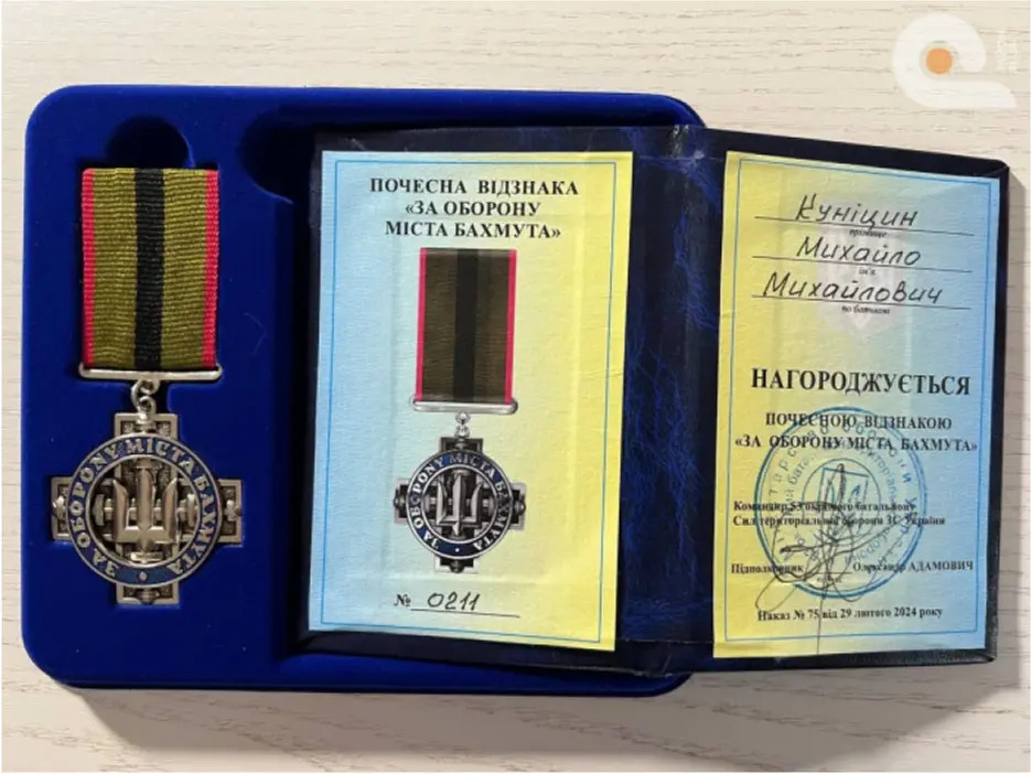 Михайло Куніцин з Луцька отримав почесну військову відзнаку «За оборону міста Бахмут».