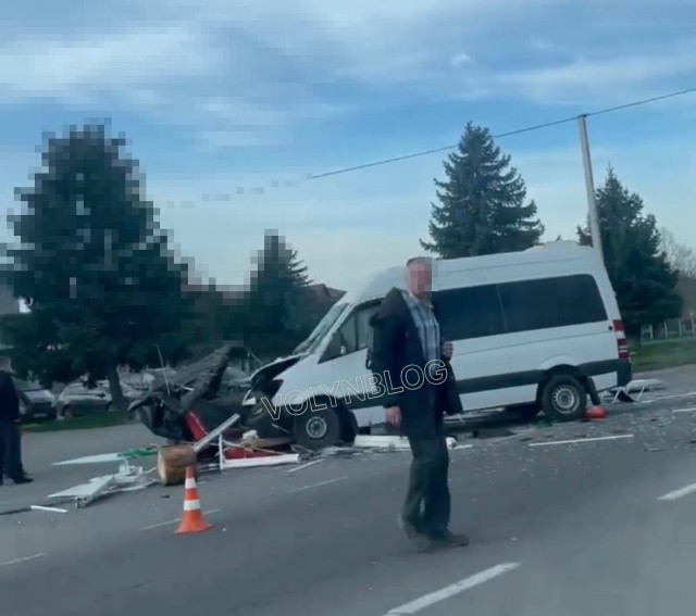 У вівторок вранці, 9 квітня, в Гірці Полонці Луцького району Mercedes Sprinter врізався у блокпост.