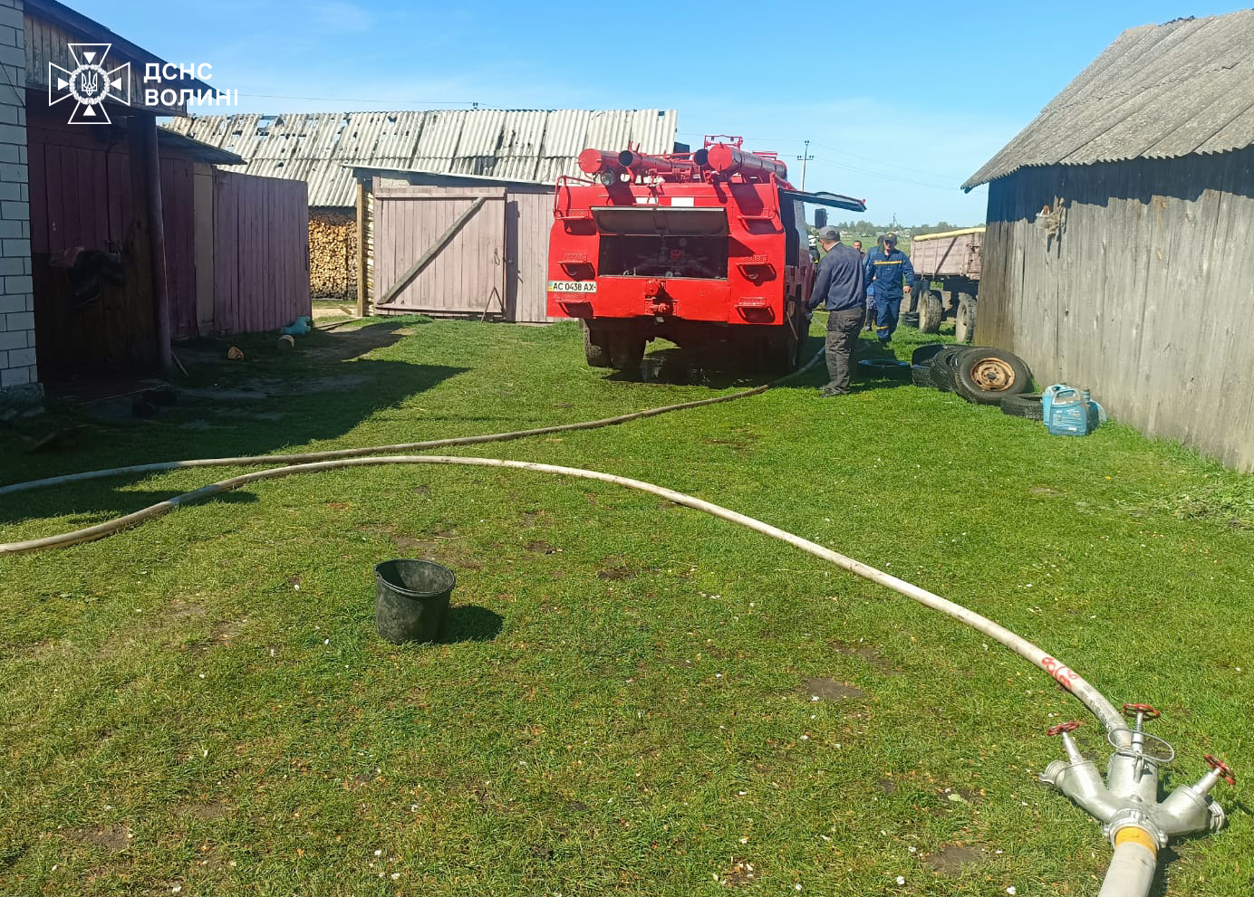 30 квітня о 15:31 рятувальників повідомили про загорання господарської будівлі в с. Сошичне Камінь-Каширського району.