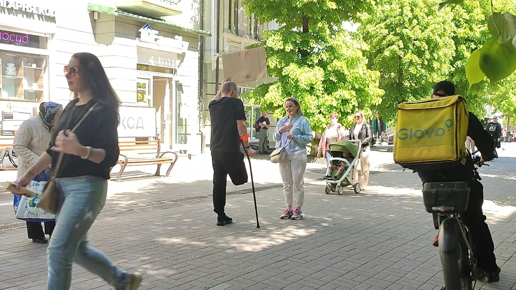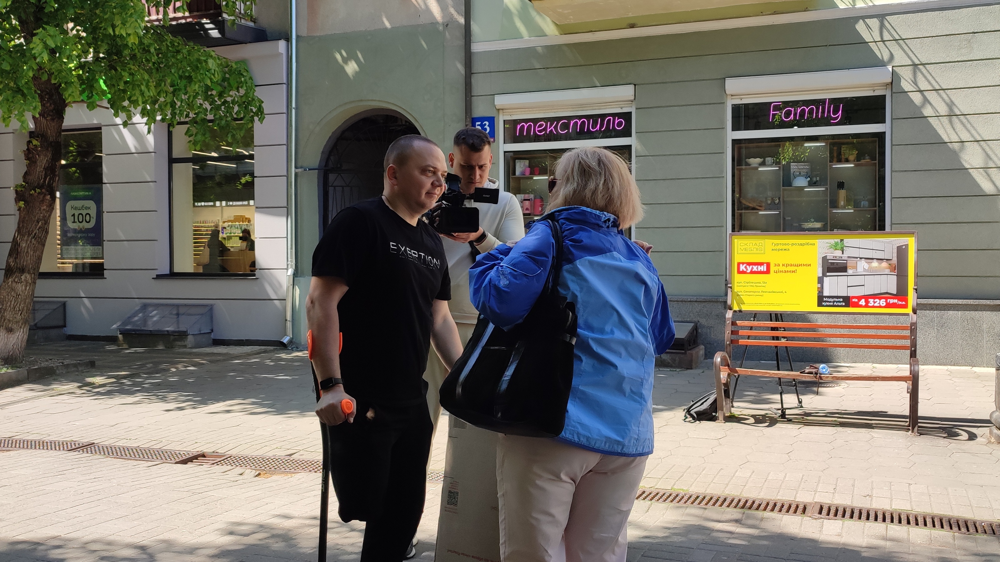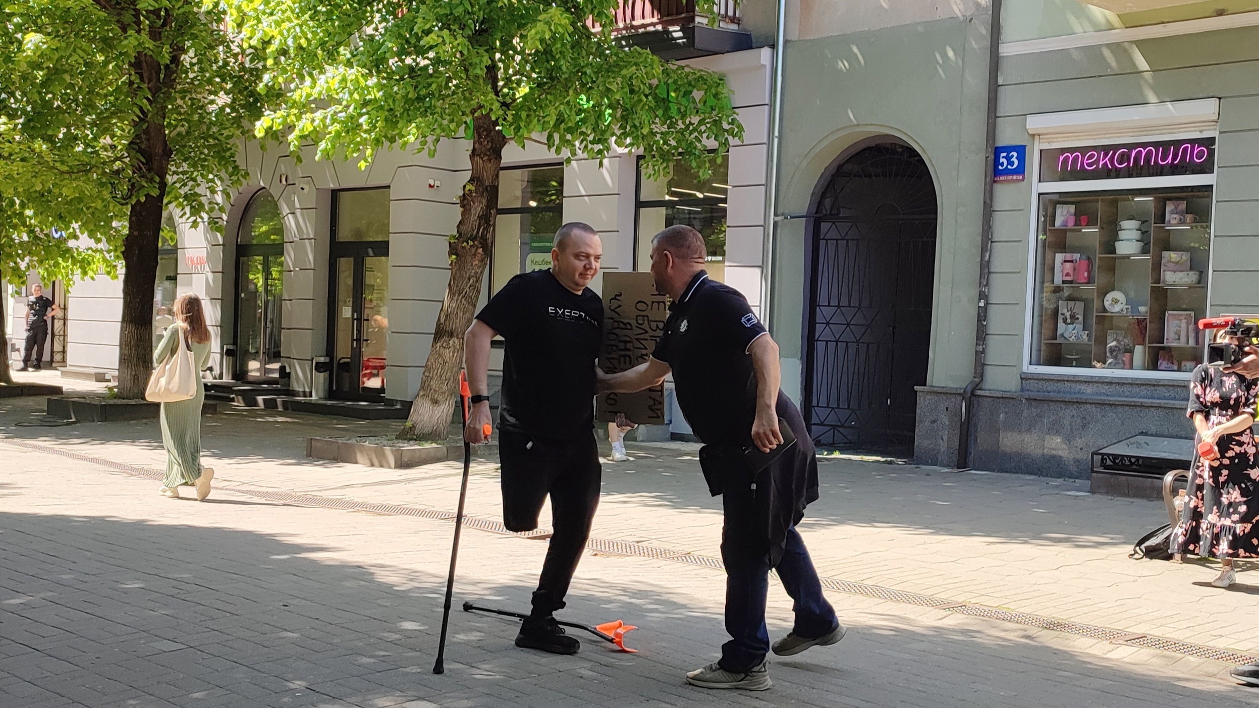 Євген Сивопляс стояв без милиць із плакатом, на якому був надпис: «Не відвертай обличчя. Я не чудовисько!» та спостерігав за реакцією перехожих.
