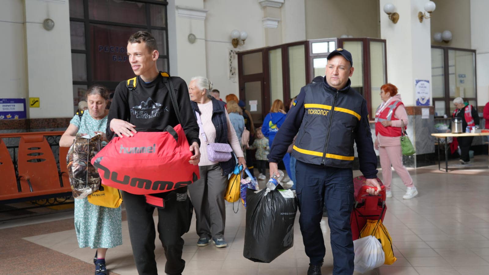 Співробітники ДСНС допомогли громадянам вийти з потягу, перенести речі до автобусів, медики-рятувальники надали необхідну медичну допомогу, а психологи спілкувались з дітьми та дорослими і надали моральну підтримку тим, хто її потребував.