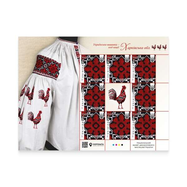 Харківщина представлена фрагментом вишивки жіночої сорочки ХІХ ст., на рукавах якої живописно зображені півники – символ сонця, світла, пробудження життя. Новинка підхоплює серію «Українська вишивка – код нації», що розпочалася ще у 2018 році.