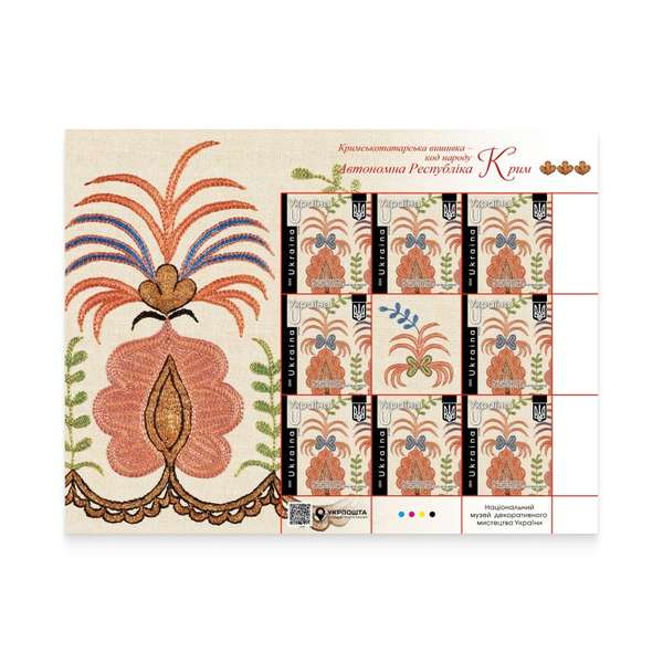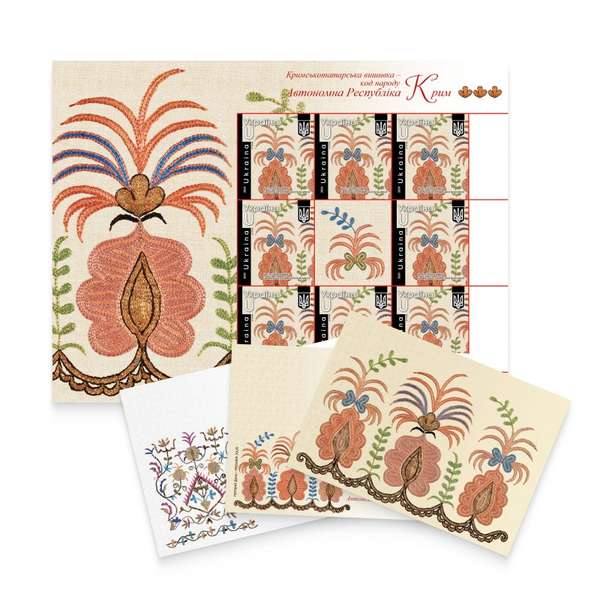 Автономна Республіка Крим на поштовому випуску представлена кримськотатарською вишивкою (жіноча головна шаль «марама», середина ХІХ ст.), яка виконана в традиційній техніці тамбурної вишивки Qasnaq (кримськотатарською «к’аснак») із використанням металізованих (золотих) і шовкових ниток по домотканому полотну. Орнаментика, колірні поєднання, технологічні прийоми відповідають принципам національного декоративно-прикладного мистецтва, що склалися з давніх часів.