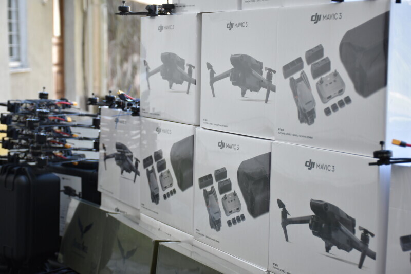 Першому штурмовому батальйону військової частини А 0501 передаємо десять квадрокоптерів DJI Mavic 3 Fly More Combo, п’ять квадрокоптерів DJI Mavic 3T, по 25 штук FPV 7 дюймів та FPV 10 дюймів.