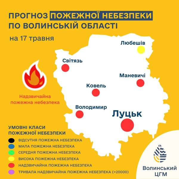 На Волині попереджають про пожежну небезпеку 17 травня.