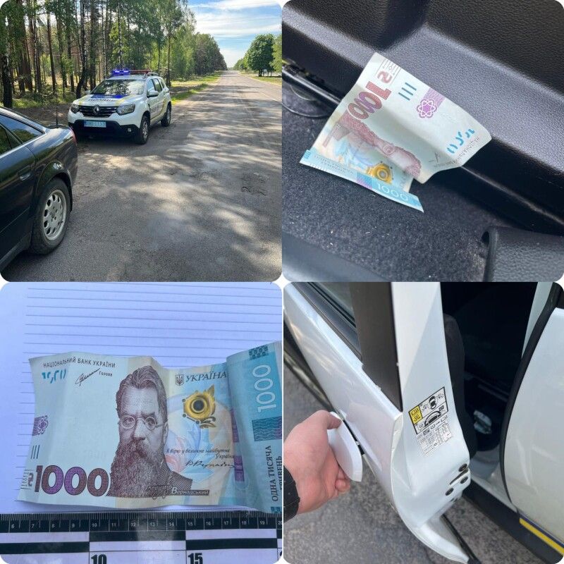 У ході спілкування водій, щоб уникнути адміністративної відповідальності за ч .2 ст. 126 КУпАП, надав неправомірну вигоду поліцейським. Порушник поклав 1000 гривень на сидіння службового автомобіля за не притягнення до передбаченої законом відповідальності.