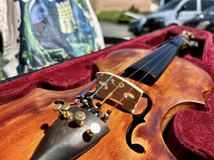 «Це традиційний вид скрипок — не клеєні частинками як фабричні, а з суцільного шматка деревини. Гриф і струнотримач виготовлені з граба. Корпус, гриф і верхня дека наклеєна. Верхній поріжок із бивня мамонта, який мені колись давно передали друзі», — сказав майстер.