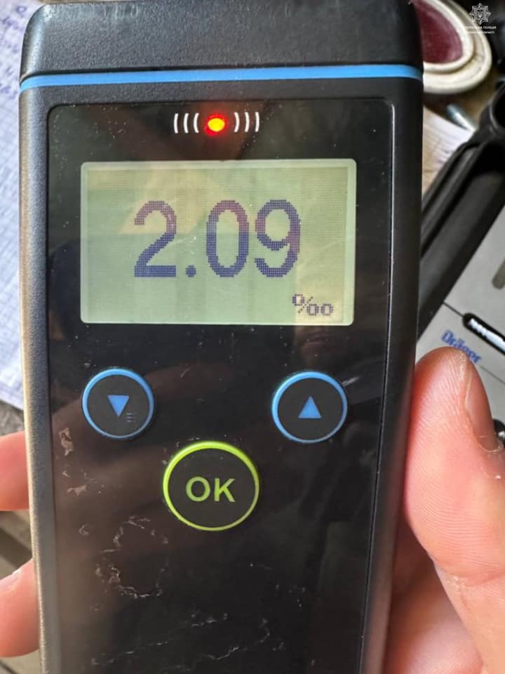 Ще одного нетверезого 22-річного керманича зупинили патрульні. Він рухався автомобілем ЗАЗ-1103 та перебував з явними ознаками алкогольного сп’яніння. Результат —2, 09 проміле.