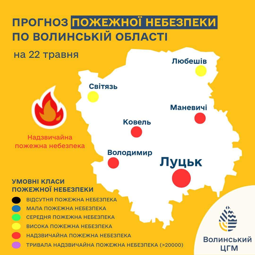 22 травня на території області збережеться надзвичайний рівень пожежної небезпеки.