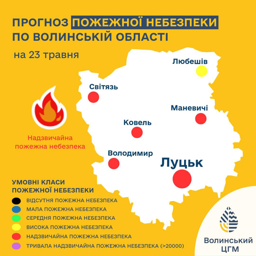 23 травня на території Волинської області збережеться надзвичайний рівень пожежної небезпеки.