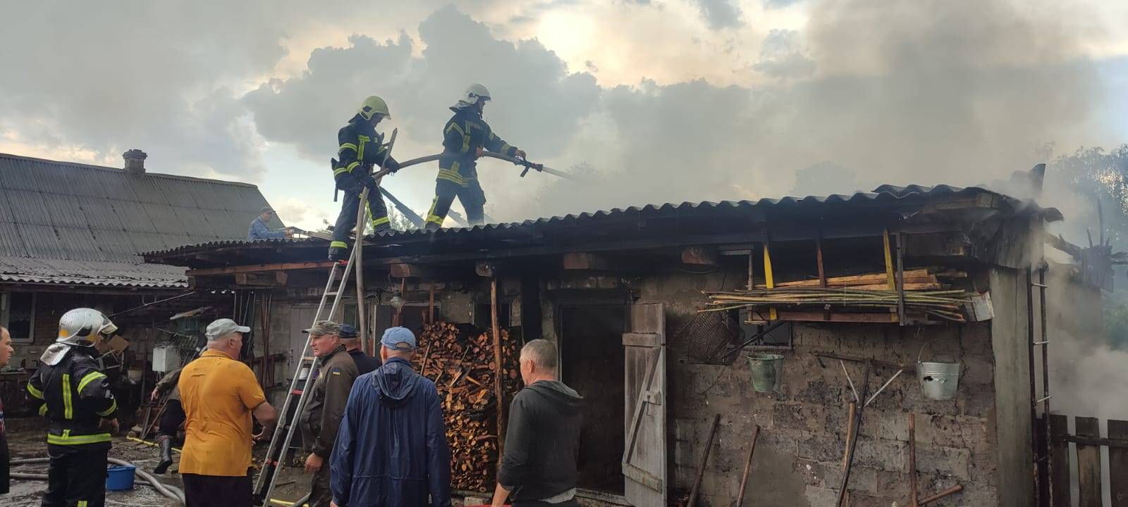 О 15:18 надійшло повідомлення про пожежу в господарській будівлі в с. Видричі. Горіння, ймовірно, спричинене влучанням грозового розряду, охопило покрівлю, поширилося всередину будівлі й перекинулося на сіно, що там зберігалося. Не пощадило полум'я й двох свиней, які були зачинені всередині.
