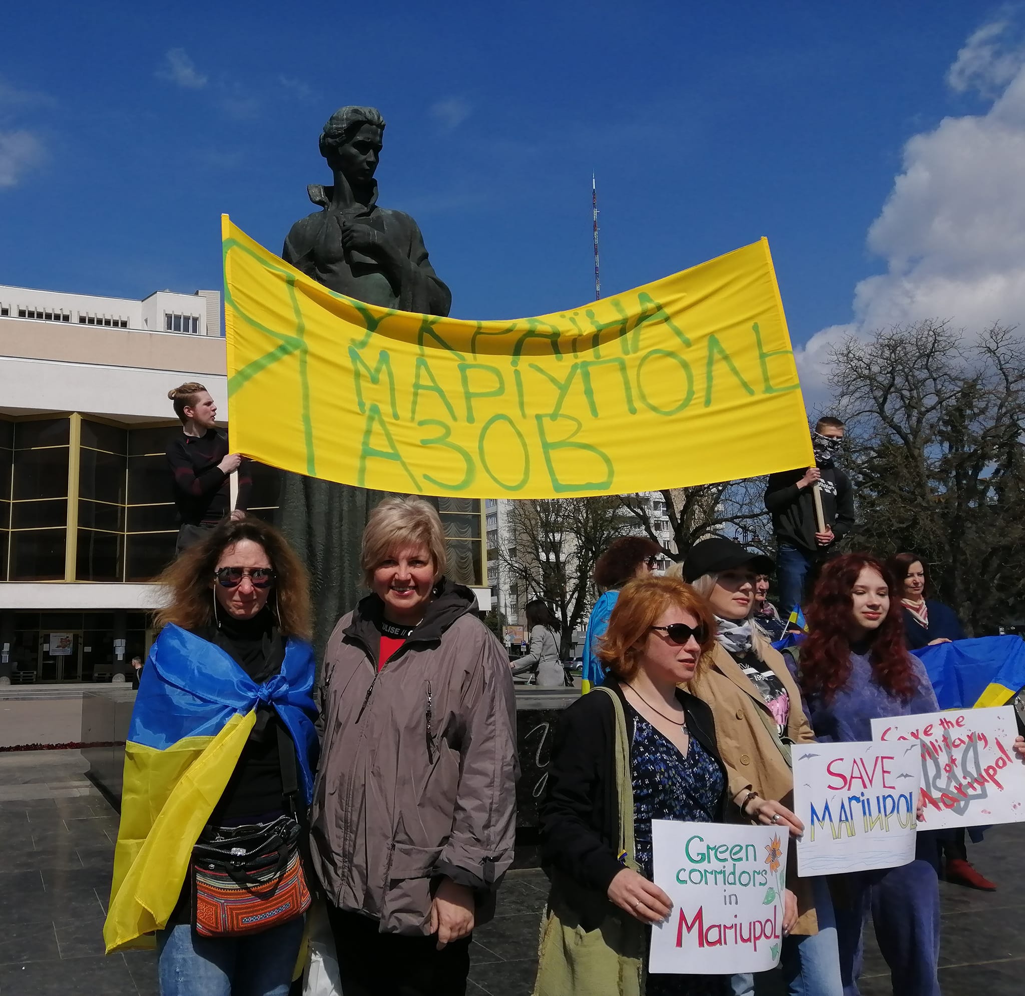 «Коли пройшли ті референдуми, коли вже був захоплений Новоазовськ, в Маріуполі була дуже велика громадська активність. Більше ніж 2 000 людей вийшли на трасу Новоазовськ-Маріуполь із мирною акцією "У вас танки, а у нас вишиванки". Люди просто трималися за руки, щоб не пустити БТРи, які могли захопити наше місто», — розповідає маріуполька.