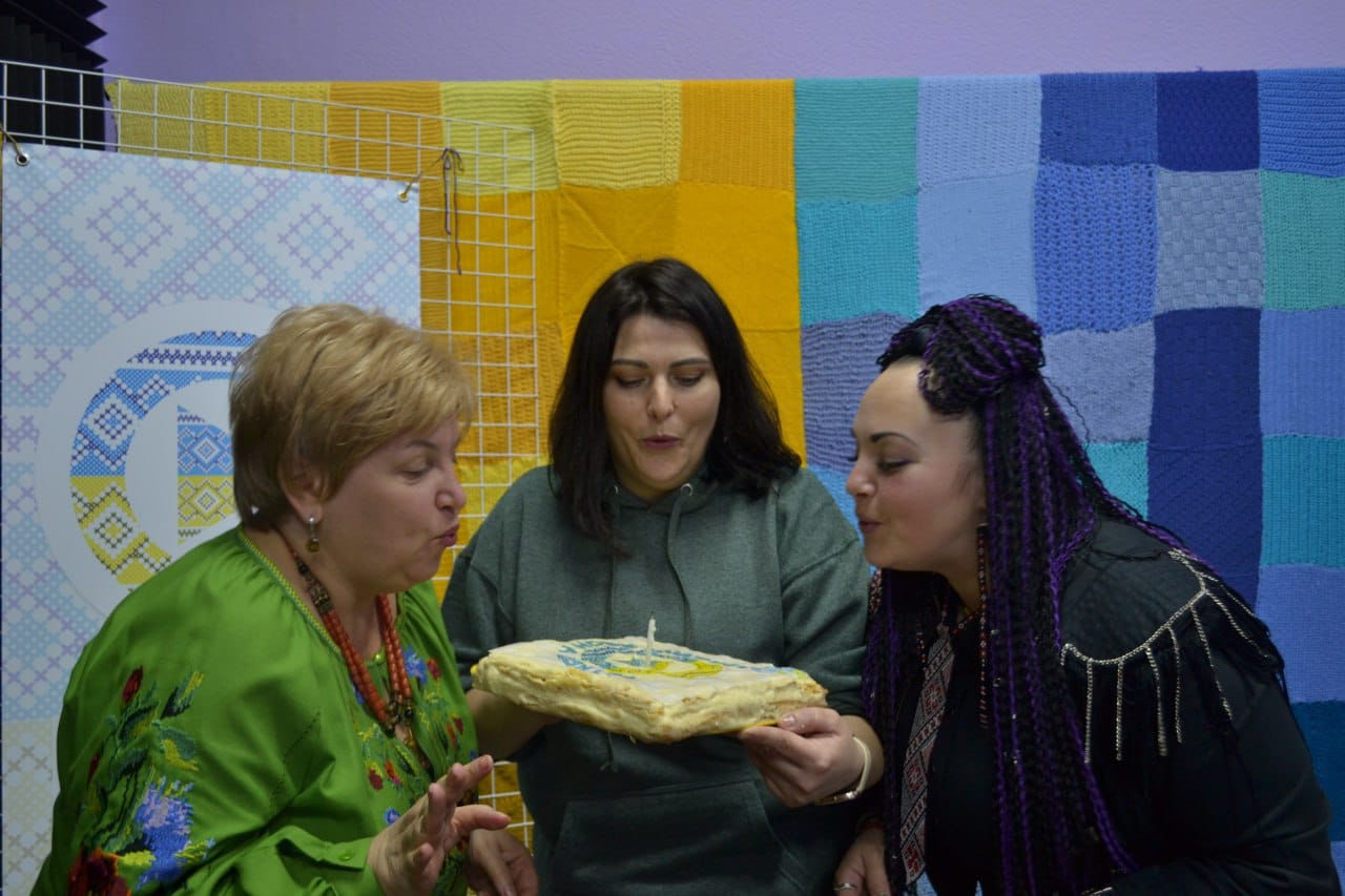 Зі слів активістки, до в’язання частин прапору активно залучають учасників-переселенців із різних міст: