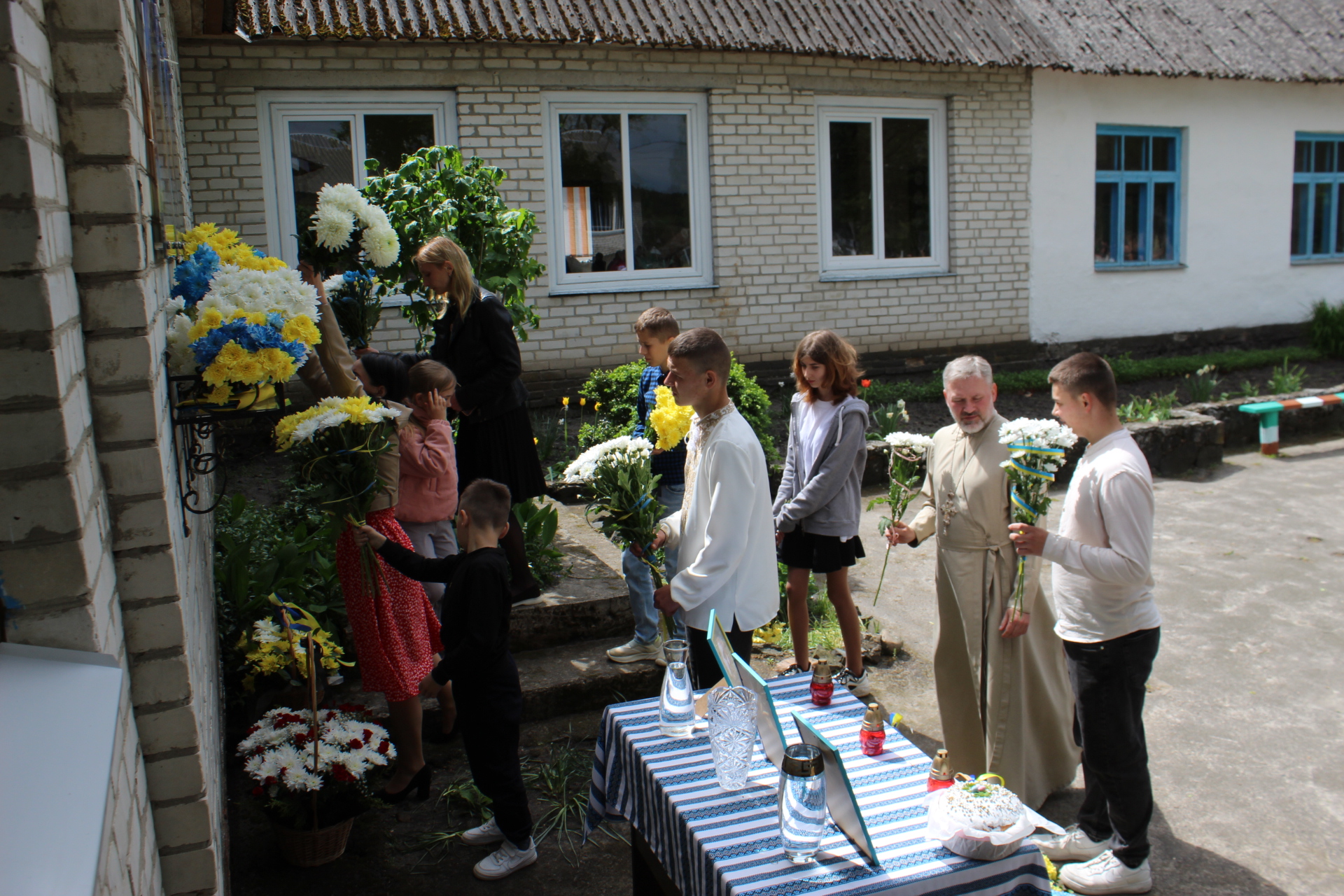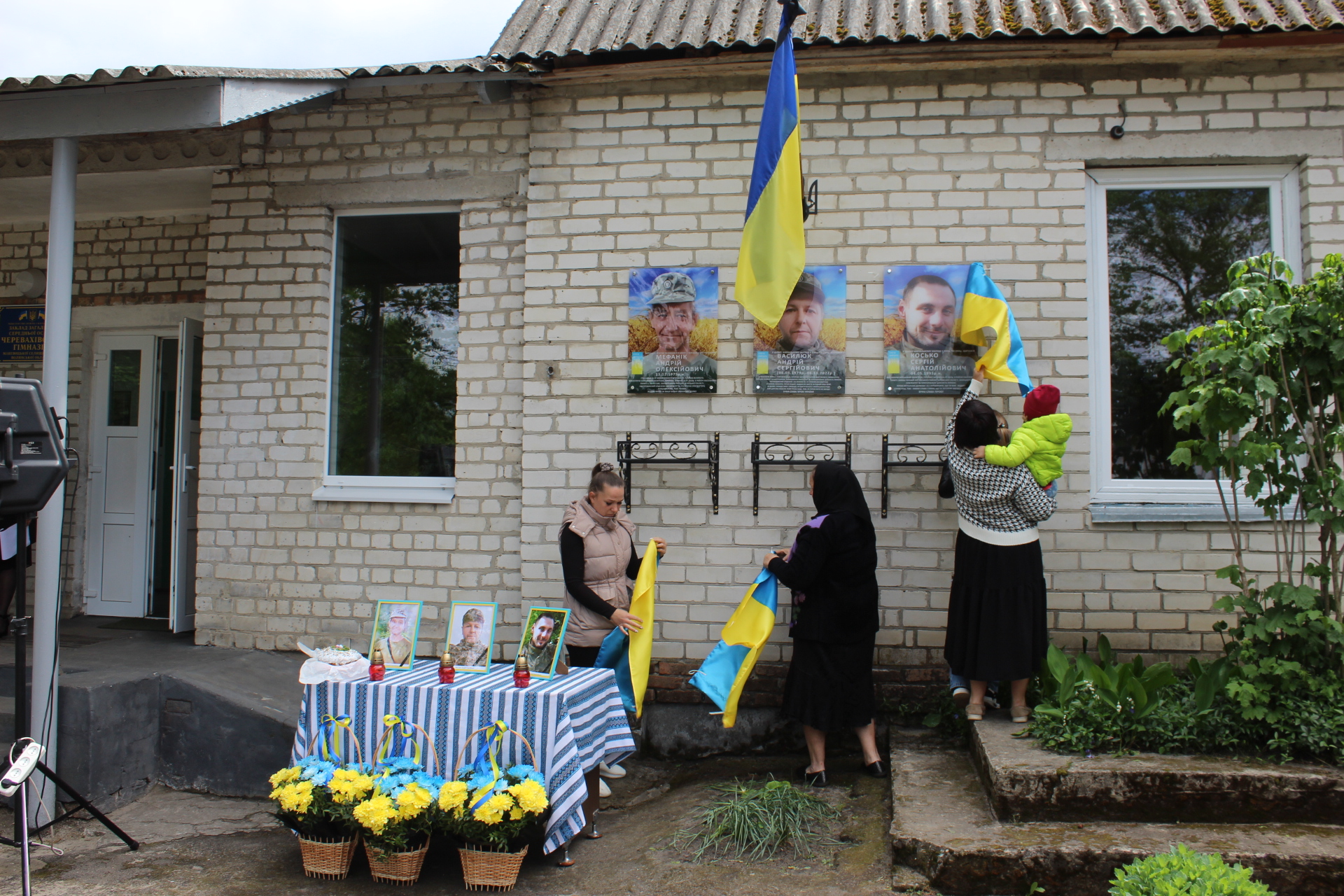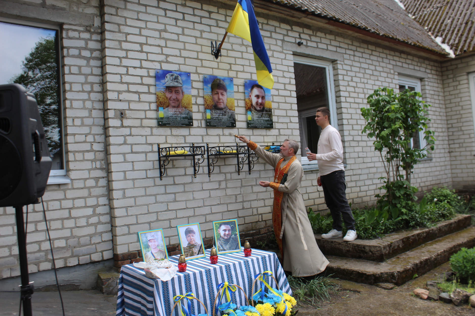 Настоятель місцевого храму освятив меморіальні дошки та помолився за усіх мужніх воїнів.