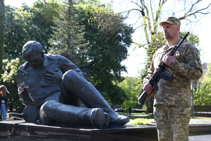Із нагоди Дня пам’яті та перемоги над нацизмом у Другій світовій війні у Луцьку на меморіальному комплексі «Вічна Слава» відбулися пам’ятні заходи – панахида за загиблими та покладання квітів до пам’ятного знаку «Поранений солдат». Щоб віддати шану загиблим під час Другої світової та всім тим, хто, поліг, захищаючи Україну під час російського вторгнення, на меморіальному комплексі зібралася активна громадськість.