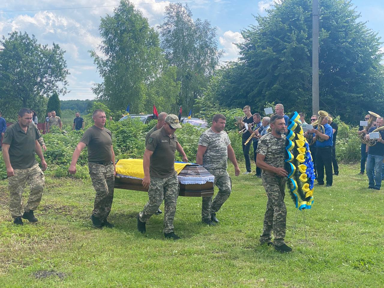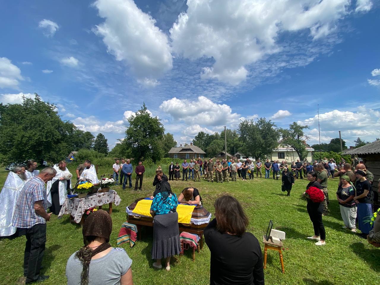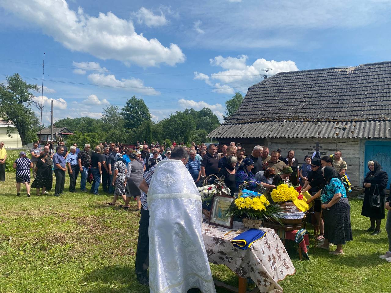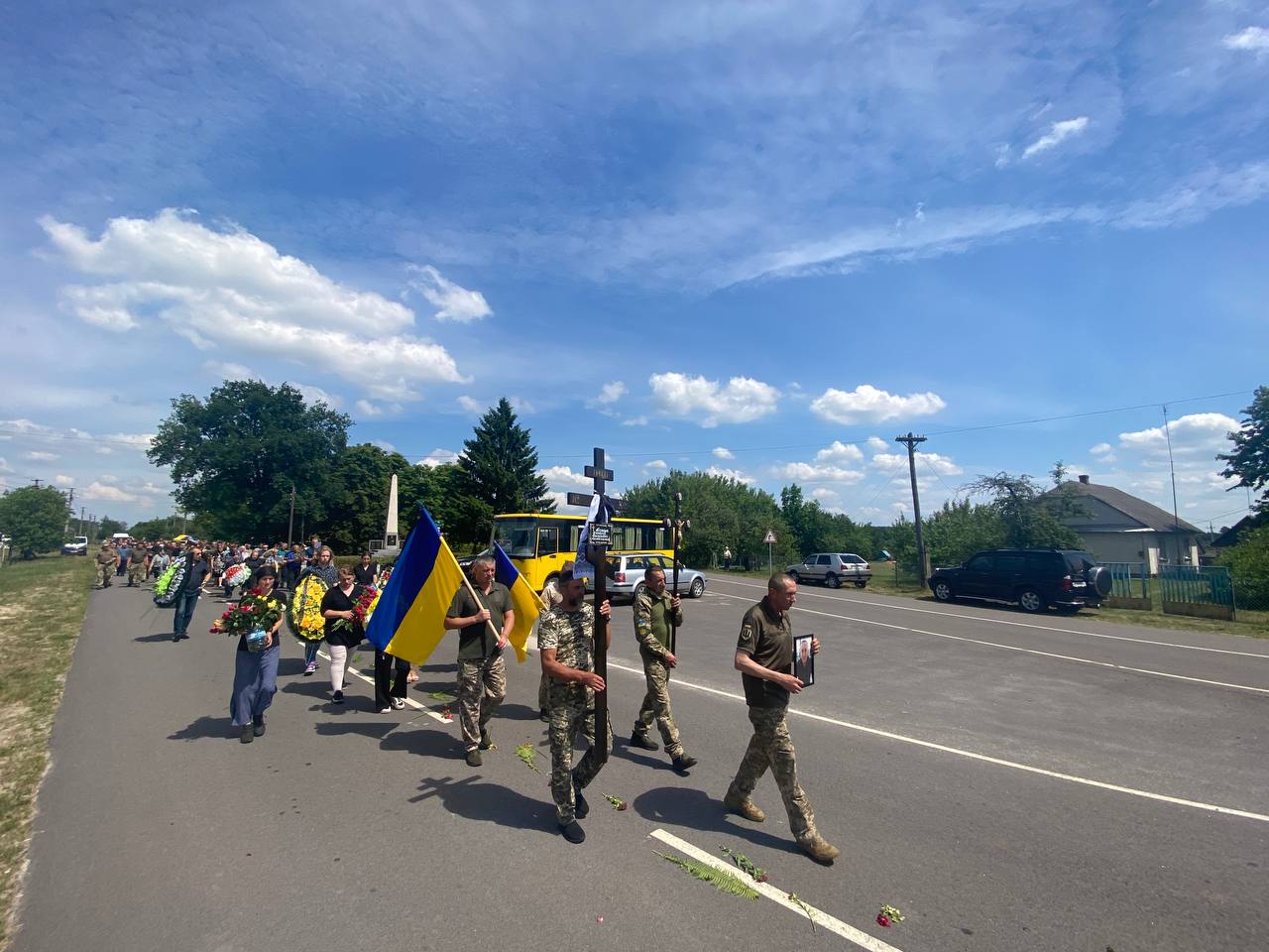 11 червня воїна на колінах зустріли в рідному селі, встелили квітами його шлях додому. З мужнім захисником попрощалися його рідні, друзі, односельці, побратими.