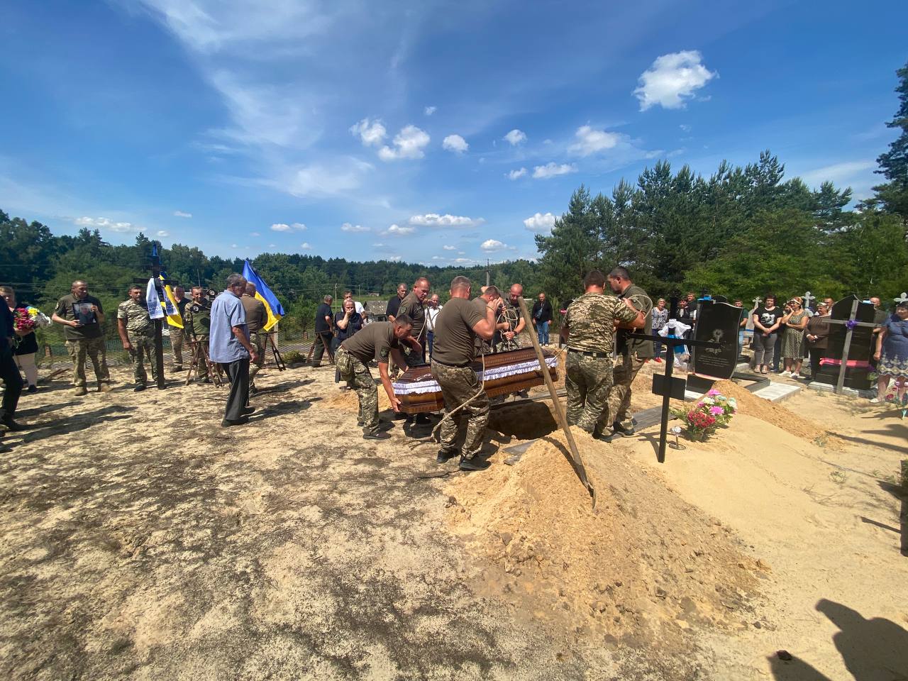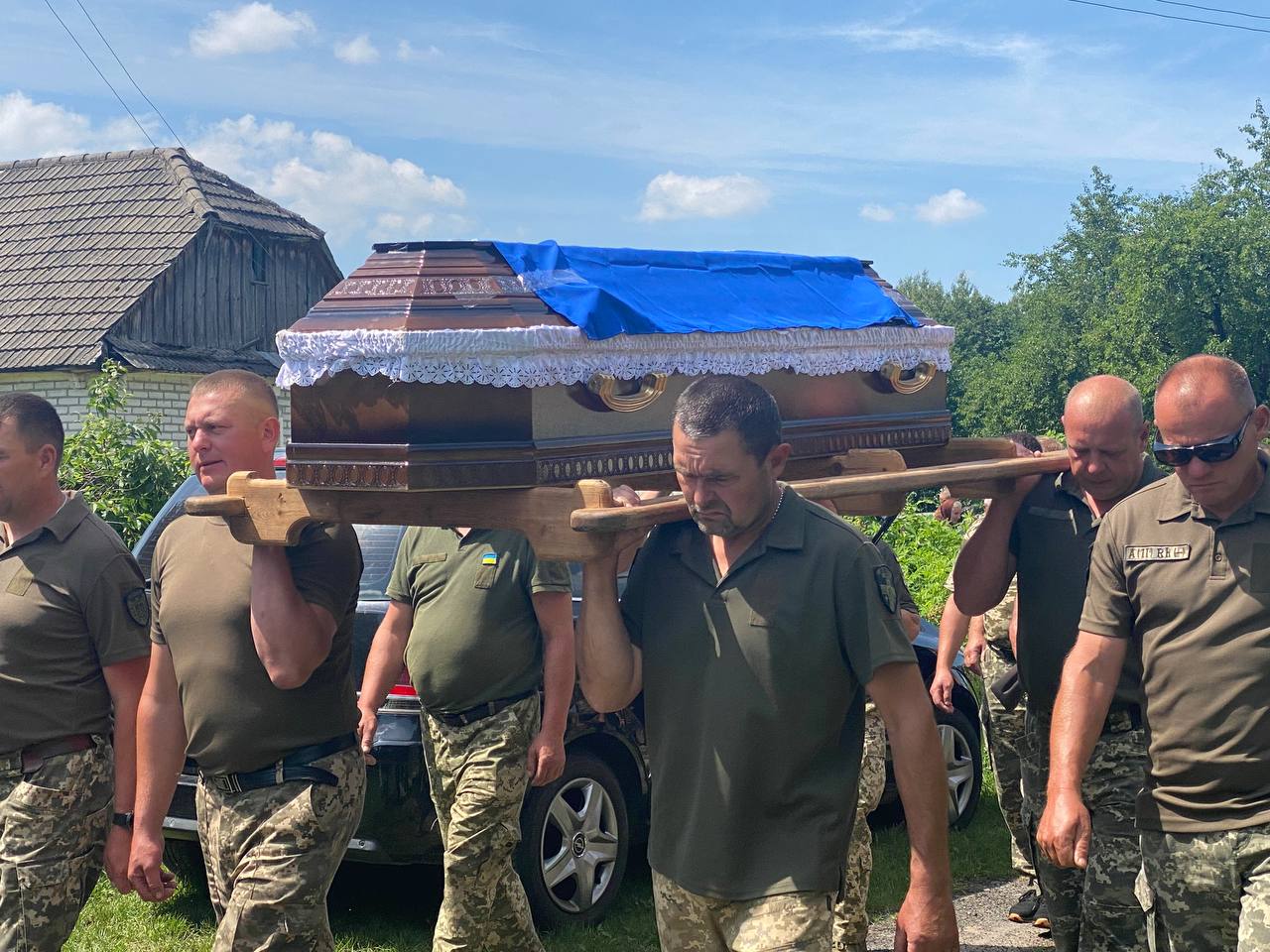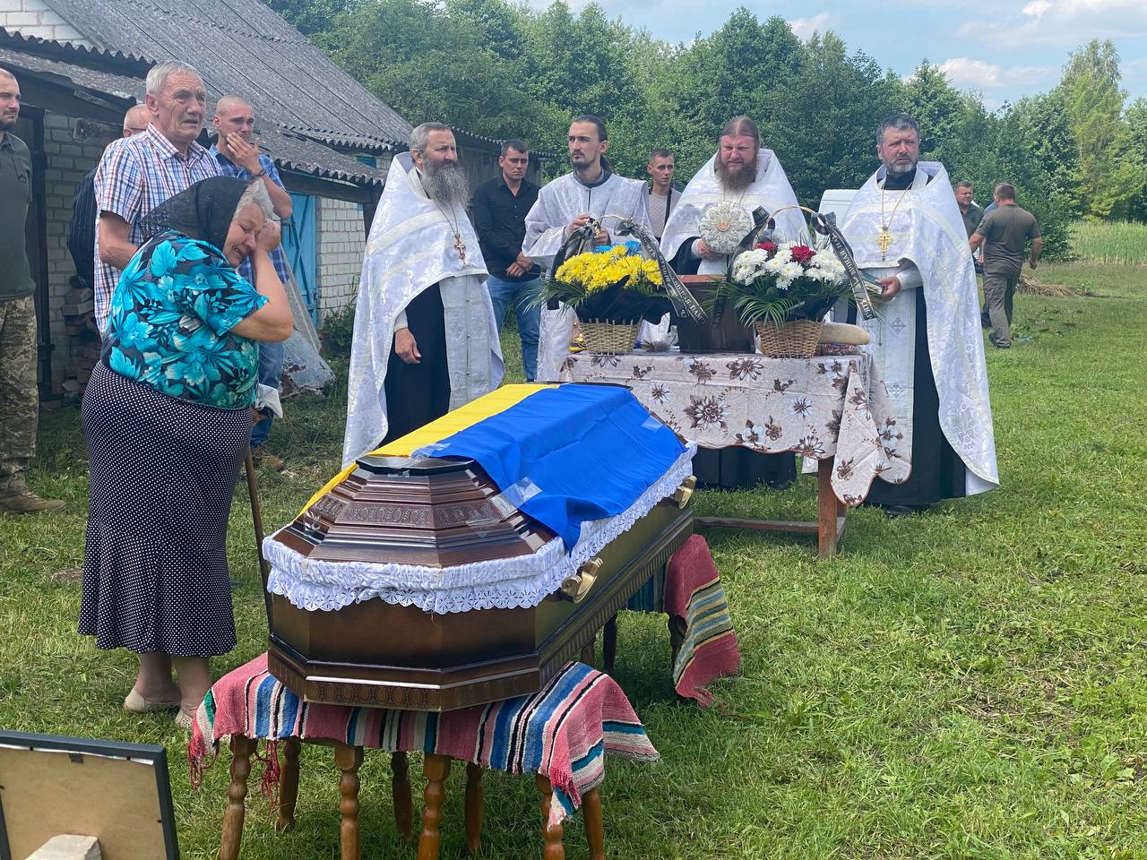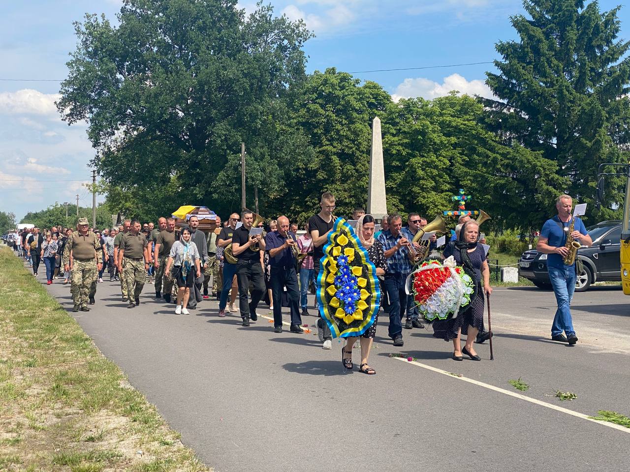 11 червня воїна на колінах зустріли в рідному селі, встелили квітами його шлях додому. З мужнім захисником попрощалися його рідні, друзі, односельці, побратими.